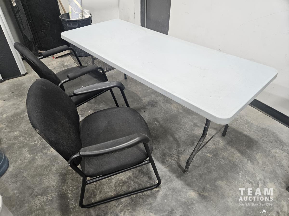 67 Plastic Folding Table, (2) Chairs and Peg Board