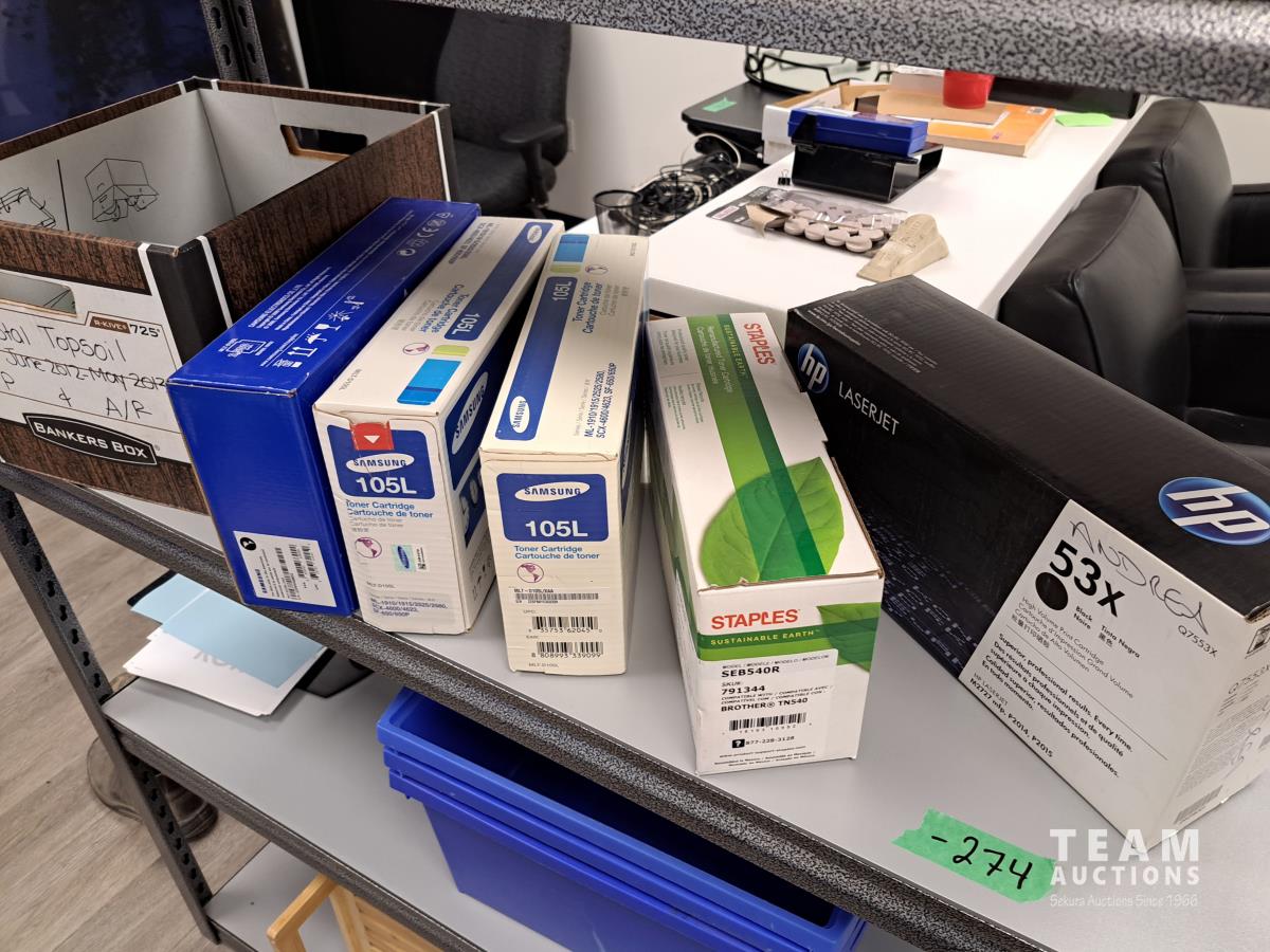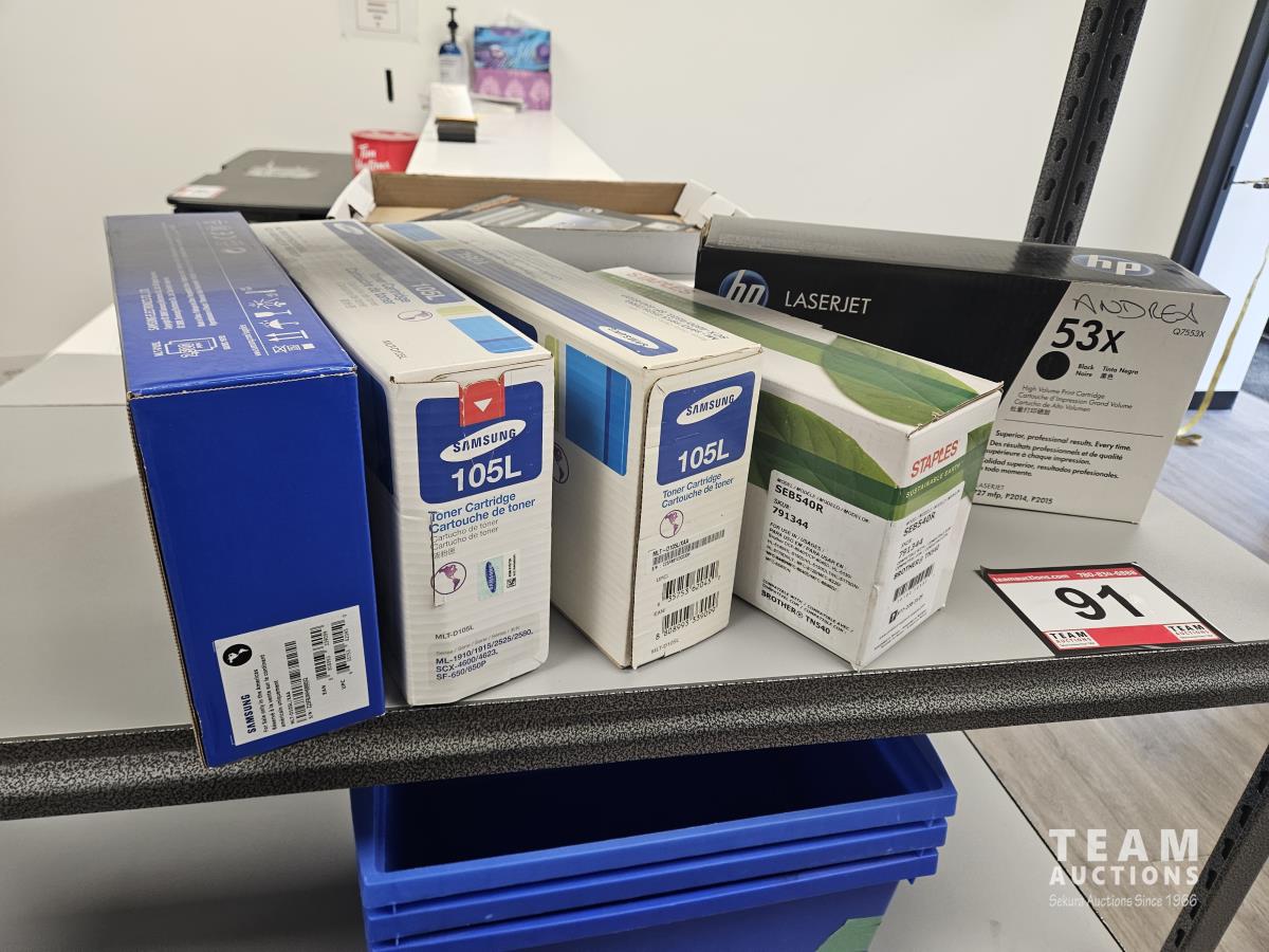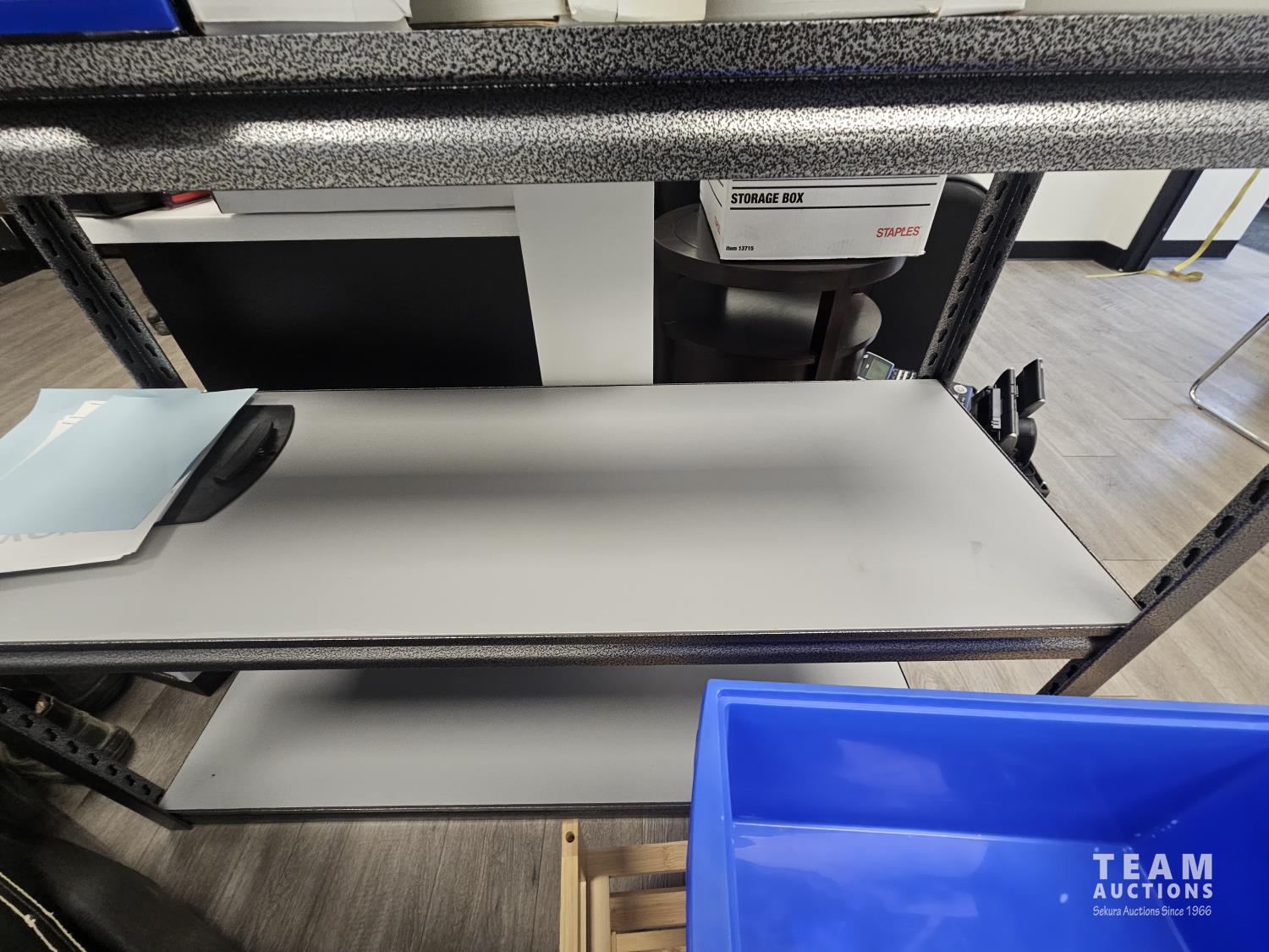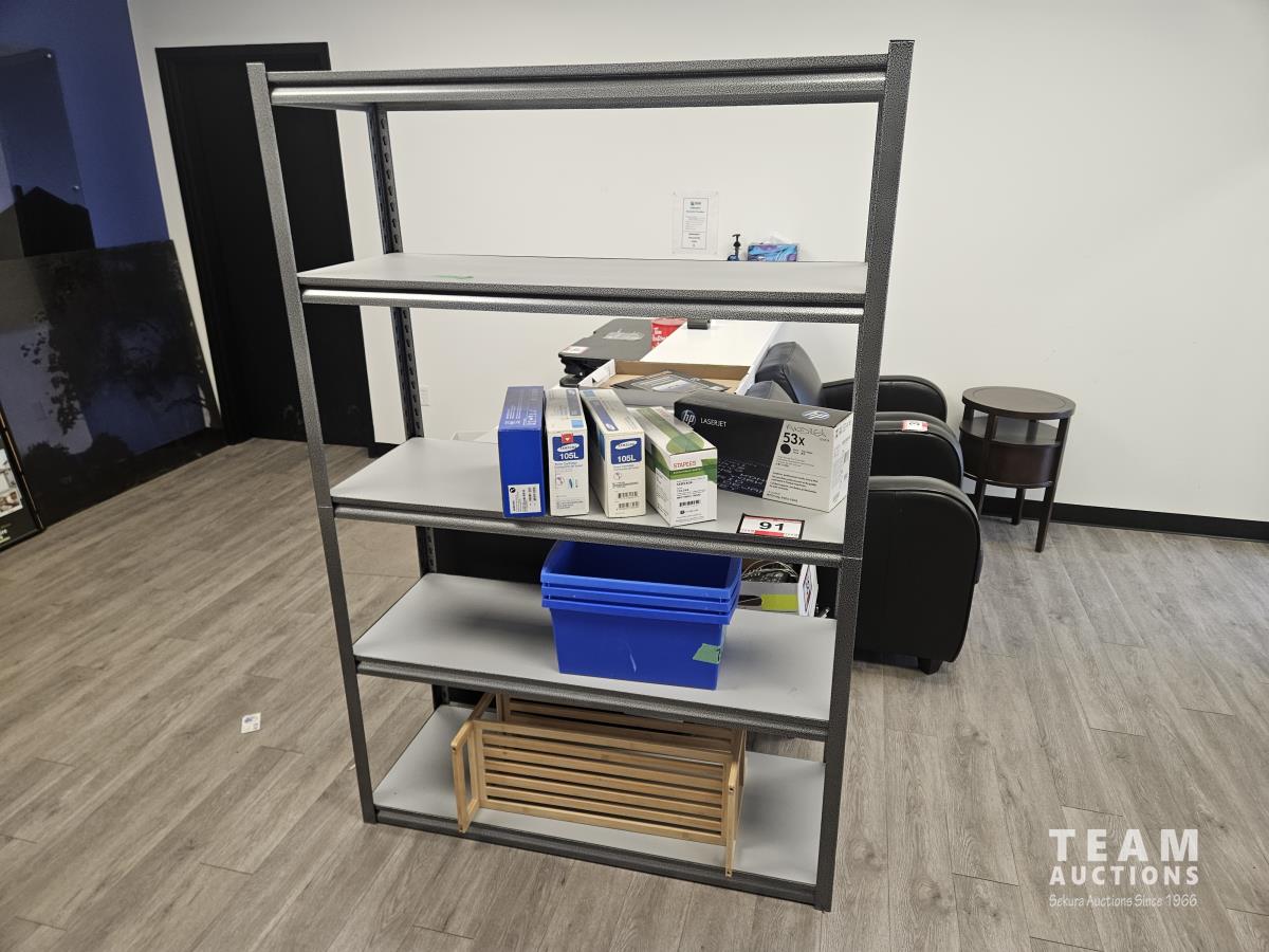 48 Inches Wide X 72 Inches High Metal Shelf, Printer cartridges, recycle bins