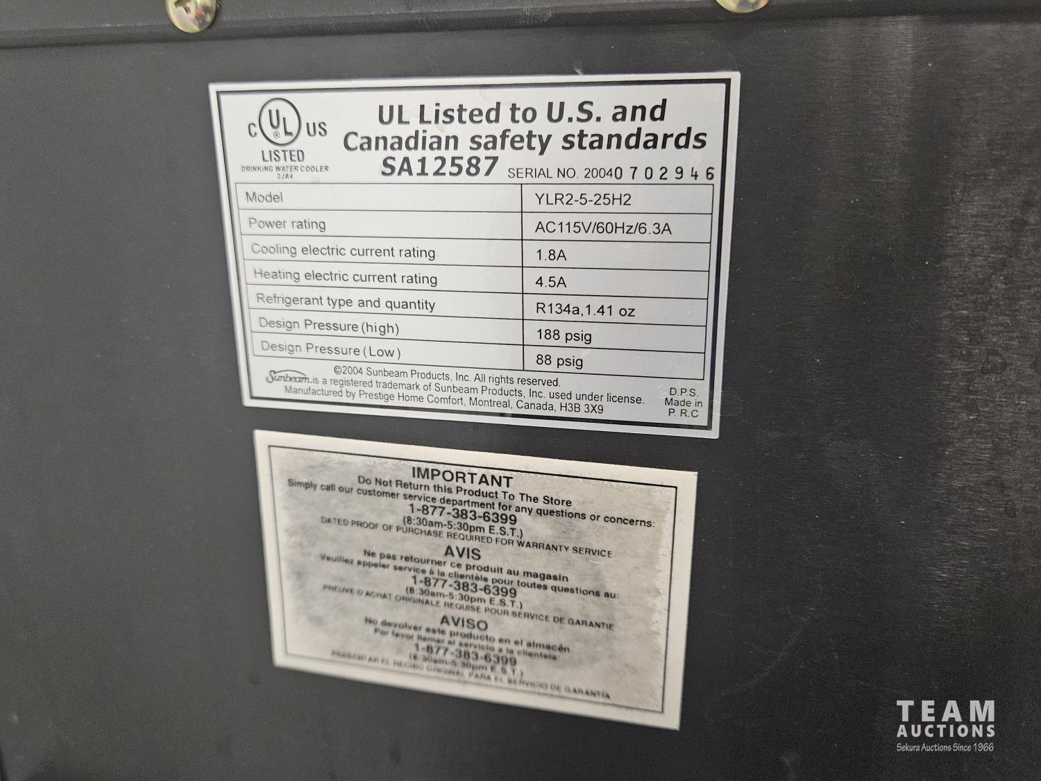39 Sunbeam YLR2-5-25H2 Water Cooler