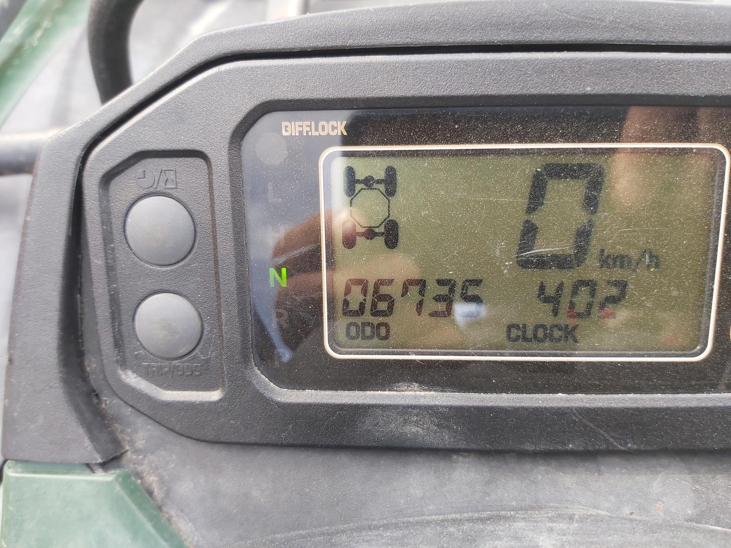 420 cc fuel injected engine, Hi/Lo range, reverse, power steering, hitch, front and rear racks, Ultra belt drive transmission, 25X8-12 front tires, 25X10-12 rear tires