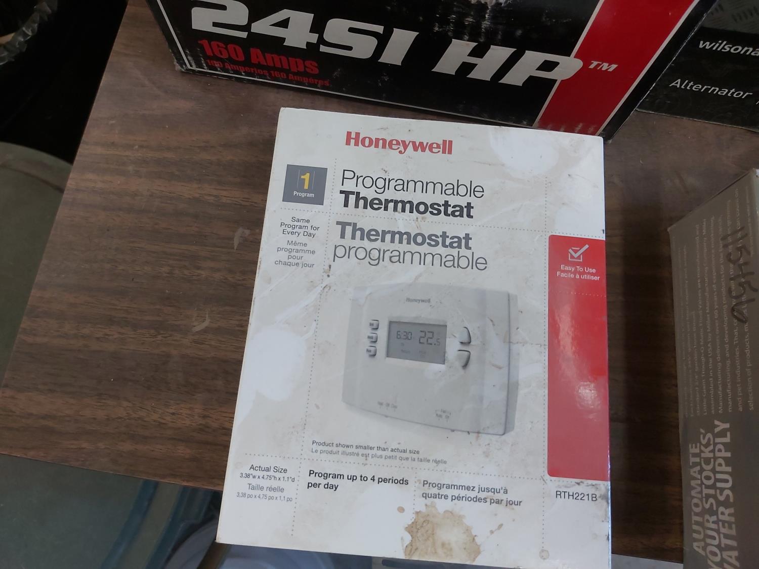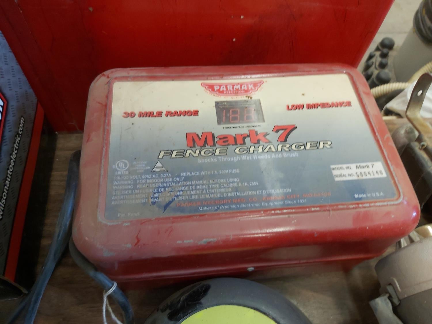 (2) Mark 7 Fencers, (1) Patriot Fencer, Wilson starter and alternator, Delco alternator, Honeywell programmable thermostat, tank float, ()3) John Deere lawn tractor blades, mower deck hubs