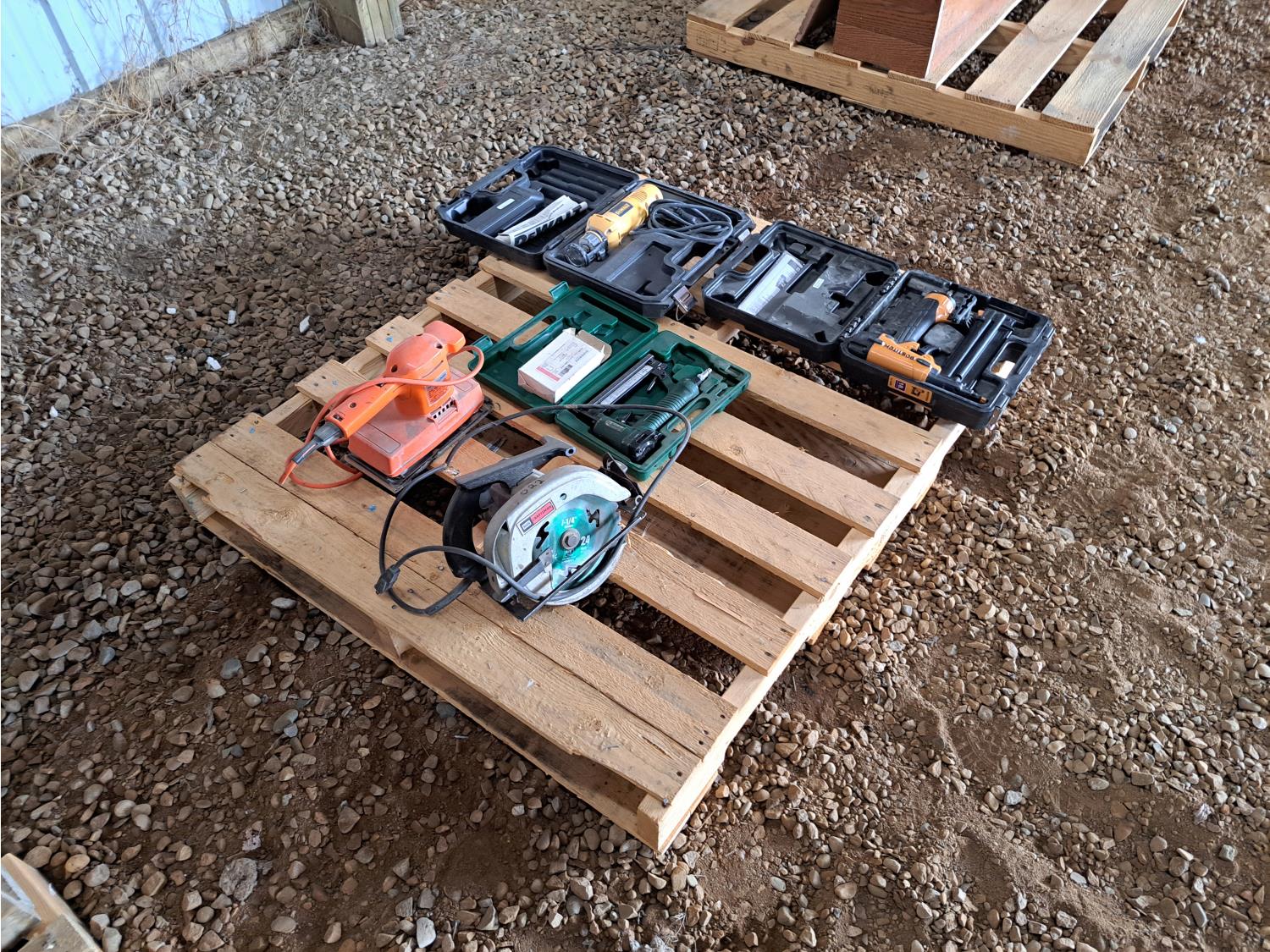 32 Brad Nailer, Stapler, Skill Saw, Sander & Misc