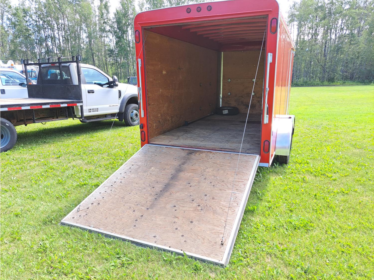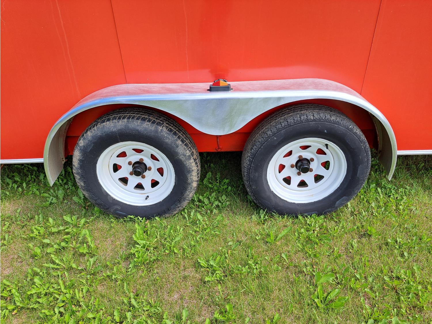 84 inch interior width, 72 inch interior height, ball hitch, side door, fold down door, torsion suspension, 3500 lb axles, 205/75R15 tires