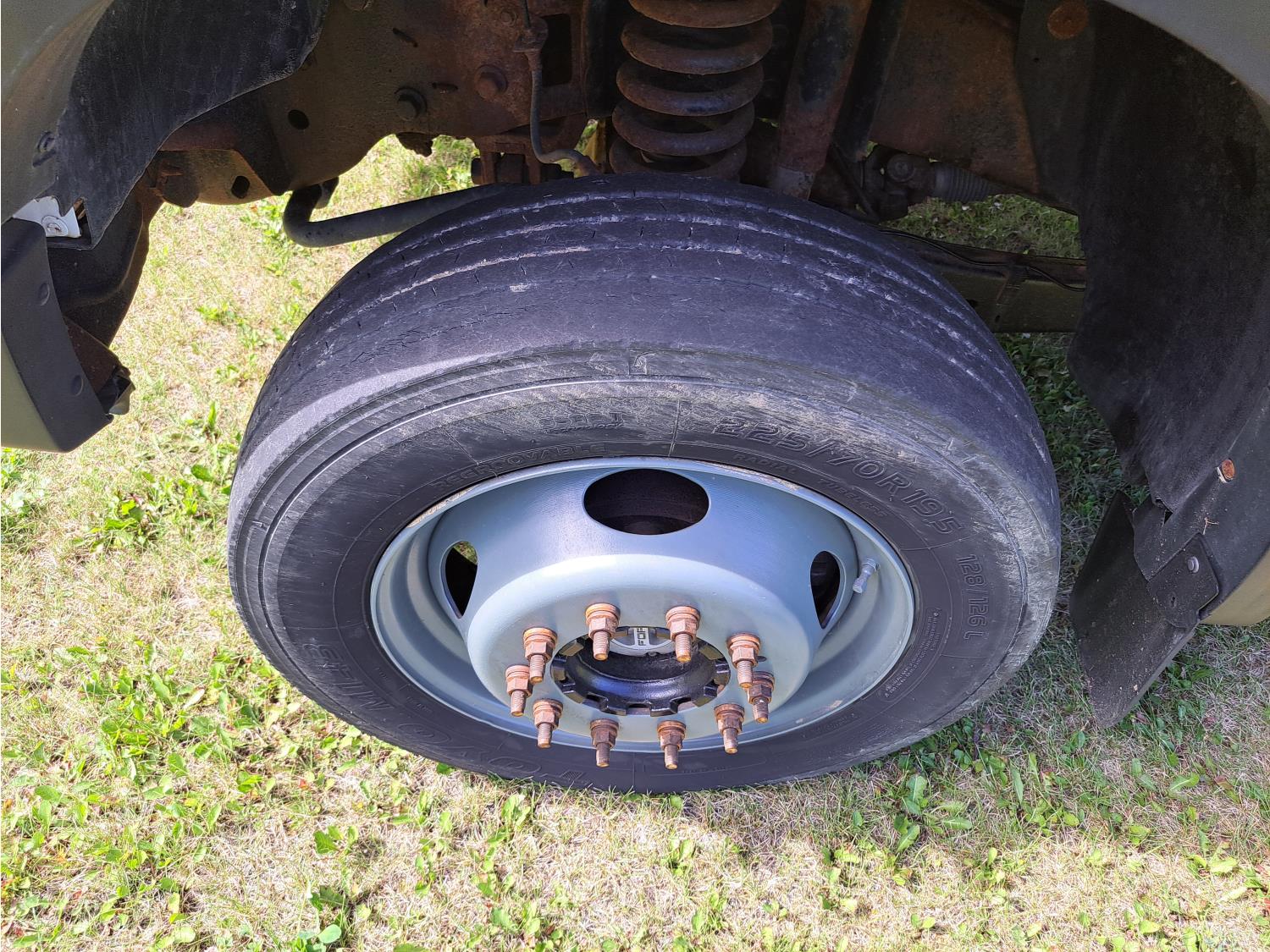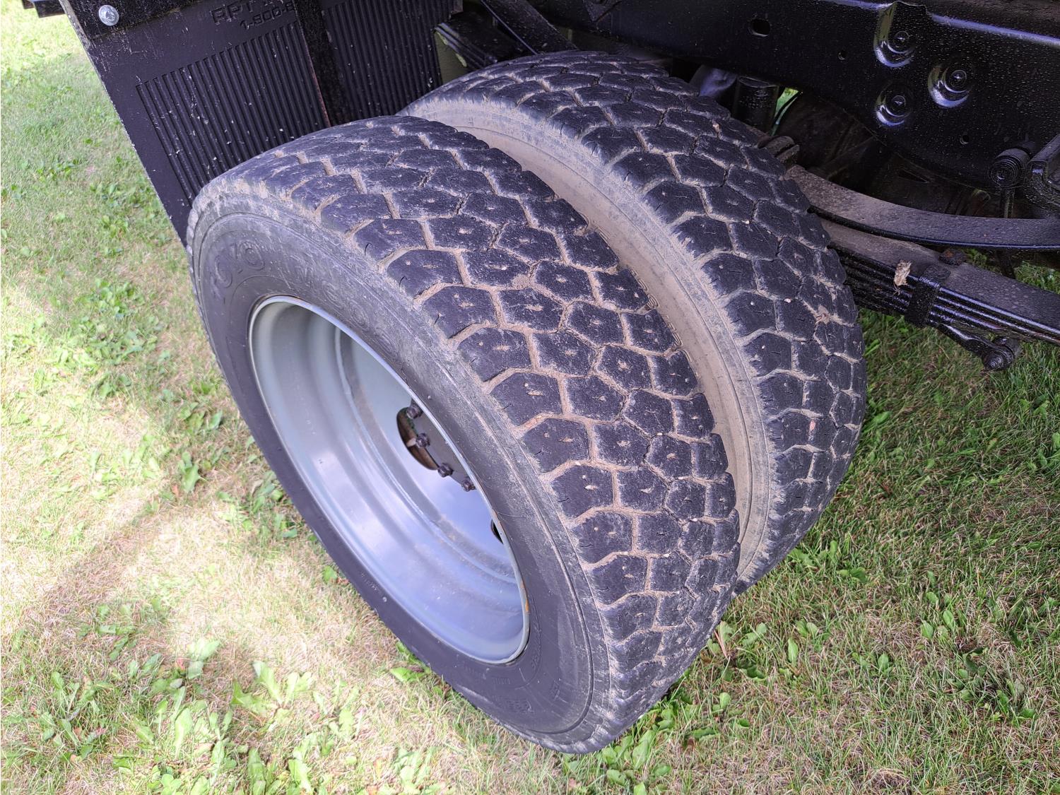 6.4 L, V8, diesel, automatic transmission, P/W, P/L, A/C, steel headache rack, steel toolbox, 16 ft long hydraulic lift steel deck, 8 ft wide, 225/70R19.5 tires