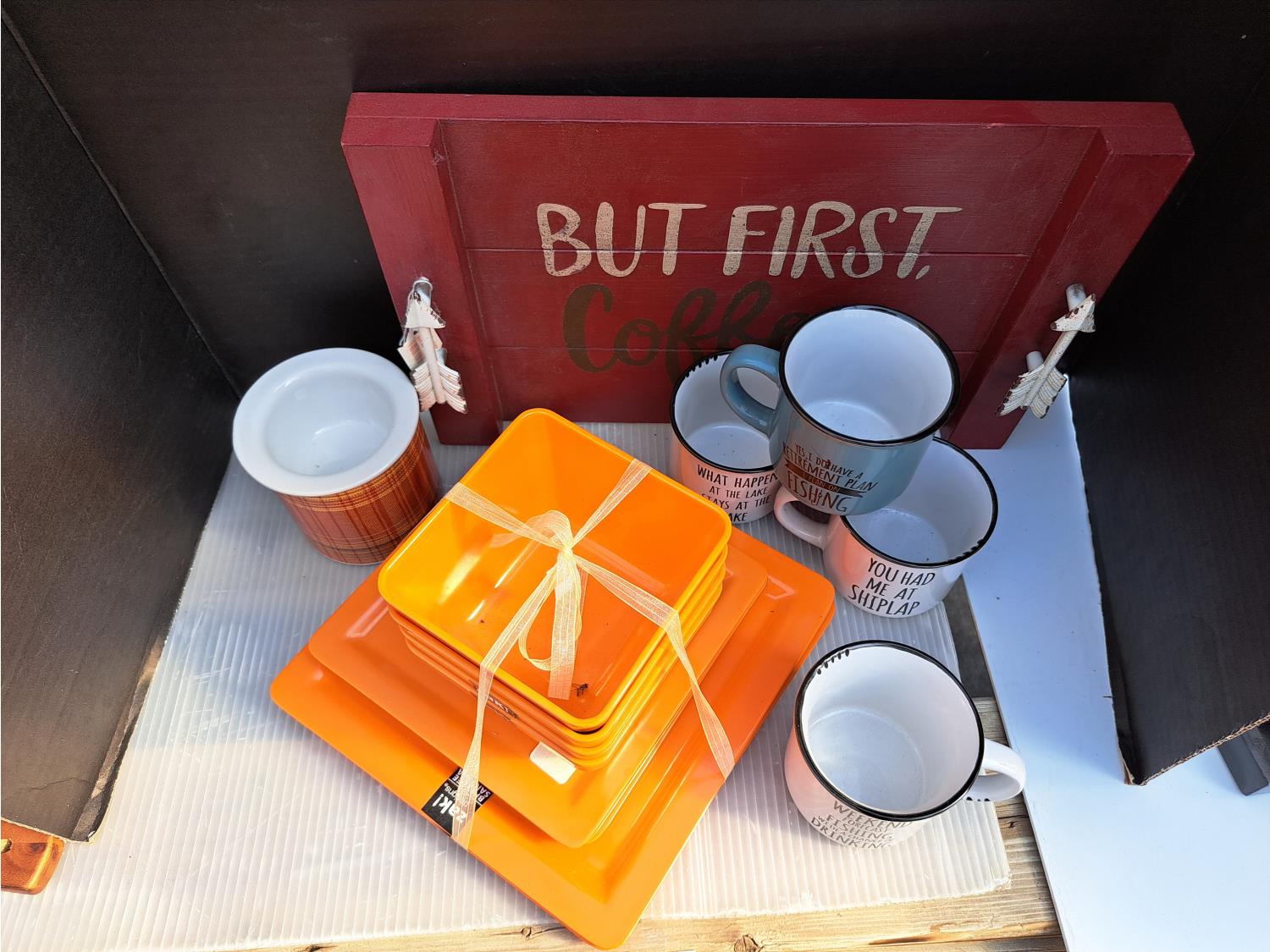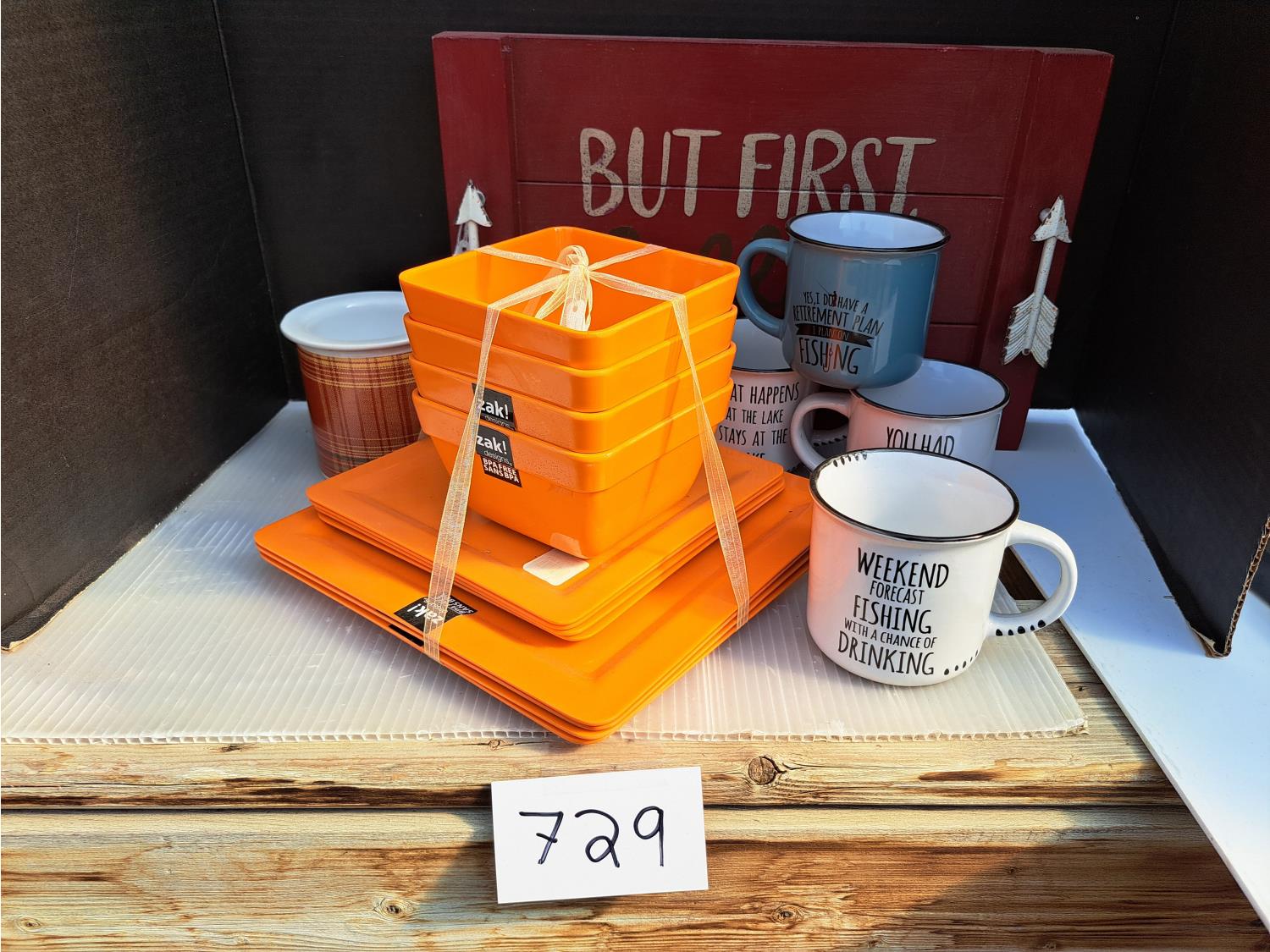 729 (4) Piece Place Setting, Tray and Mugs (Unused)