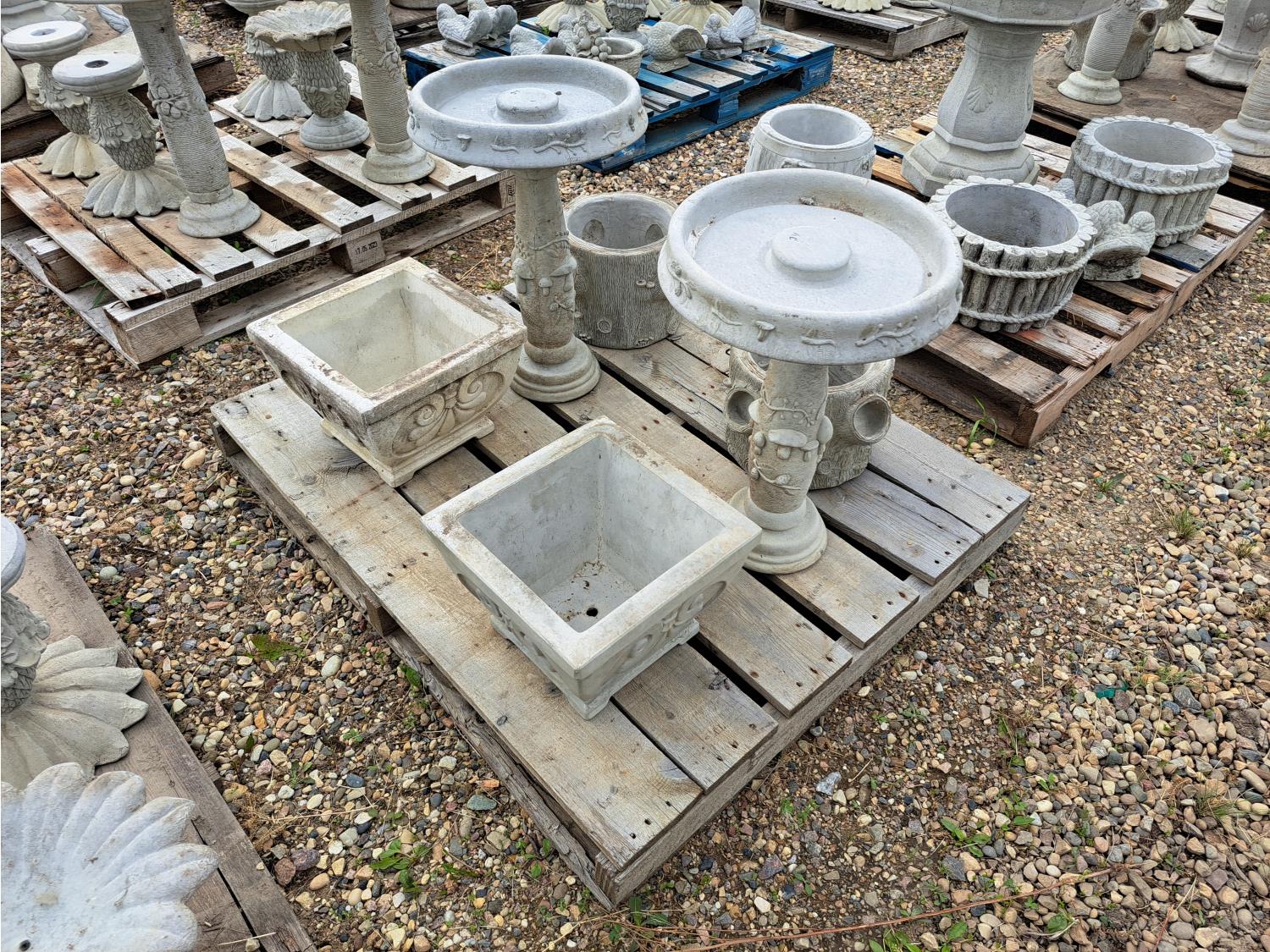 122 Concrete Lawn Decor Bird Bath and Planters (Unused)