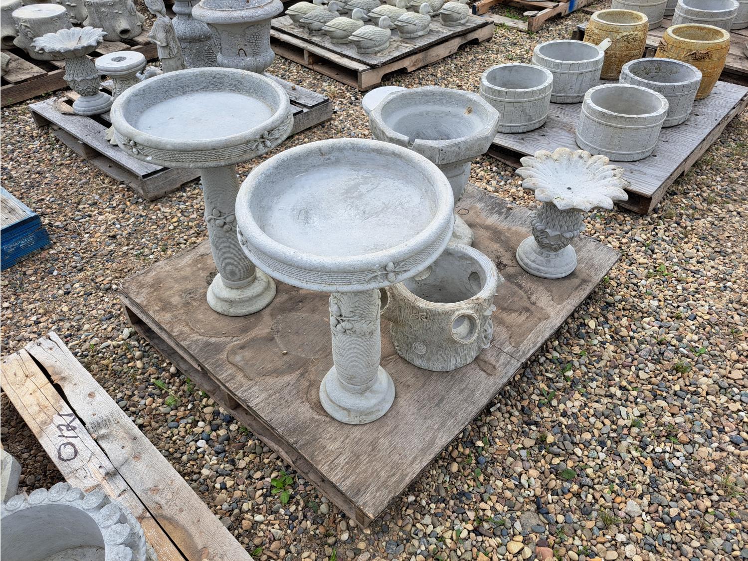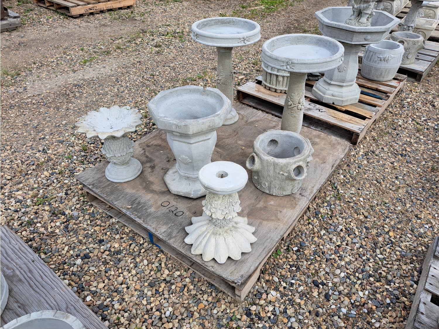 120 Concrete Lawn Decor Bird Bath Planters and Stands (Unused)