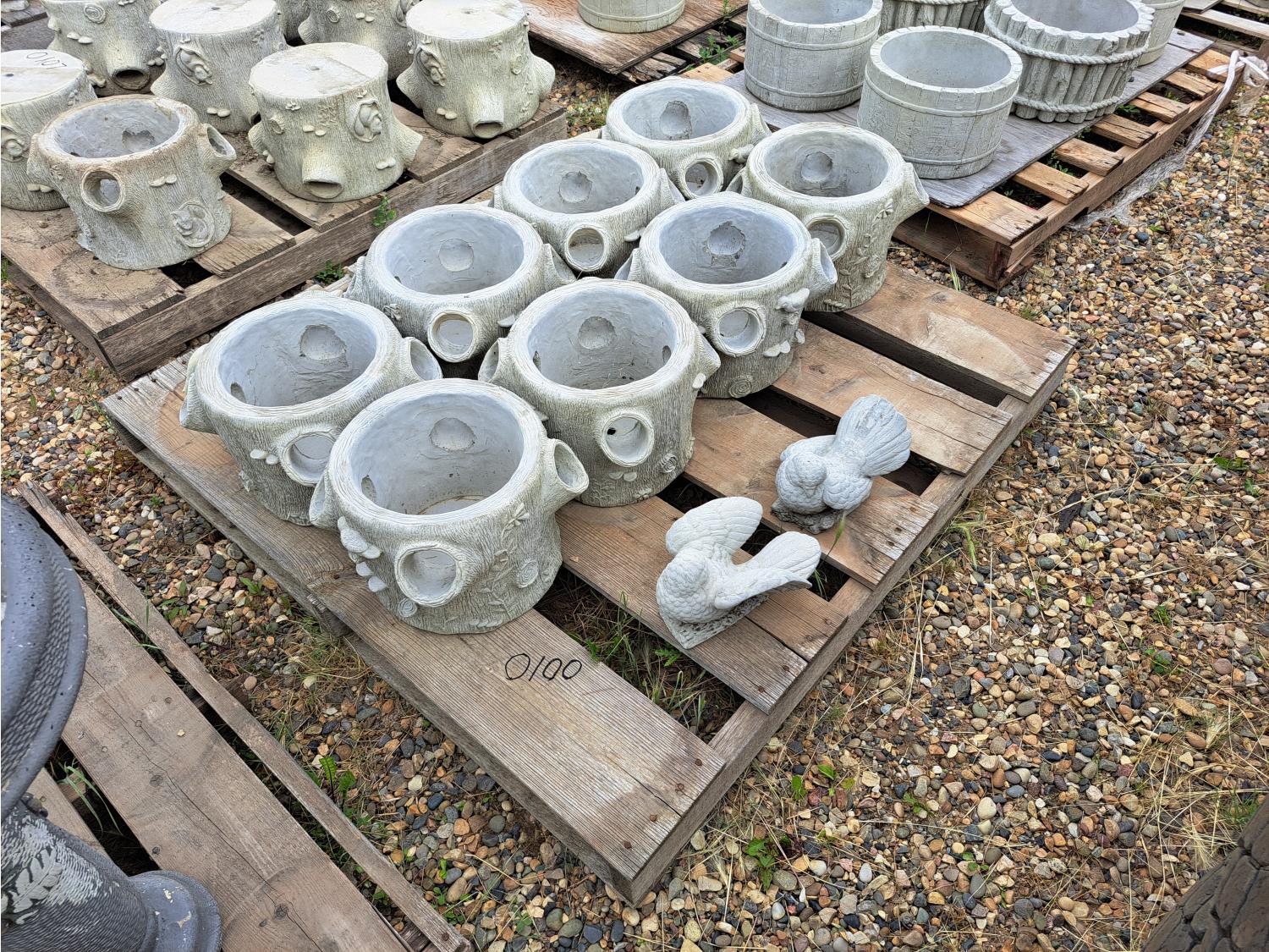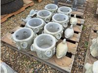 100 Concrete Pots and Lawn Decor Birds (Unused)