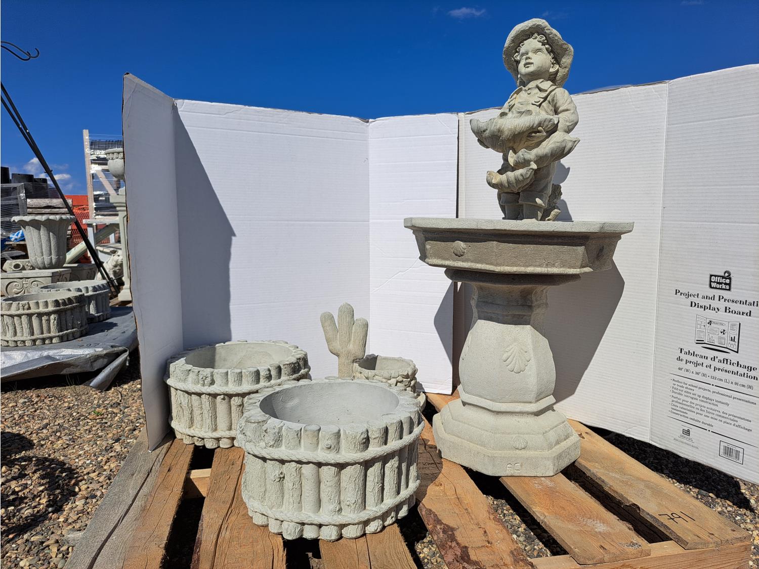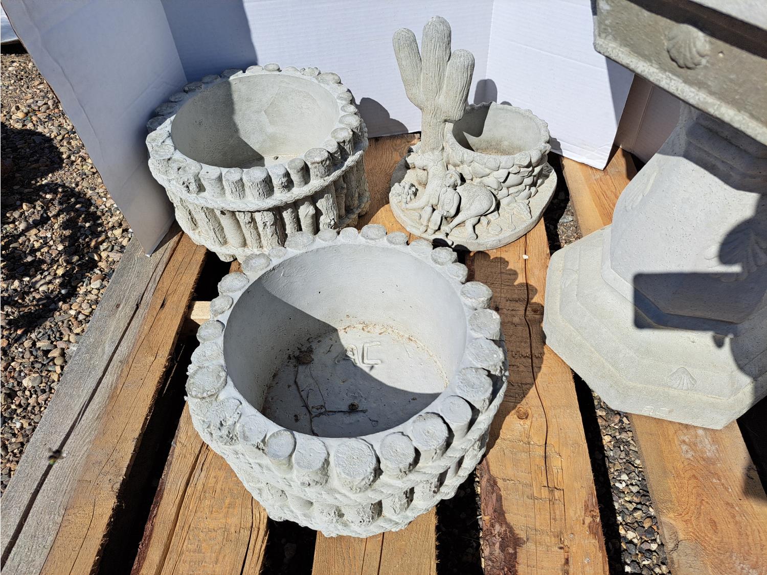 791 Concrete Statue Plant Stand and Planters (Unused)