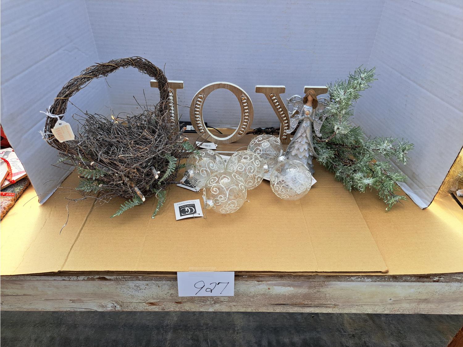 927 Joy Sign, Lighted Branch and Angel Hair Ornaments