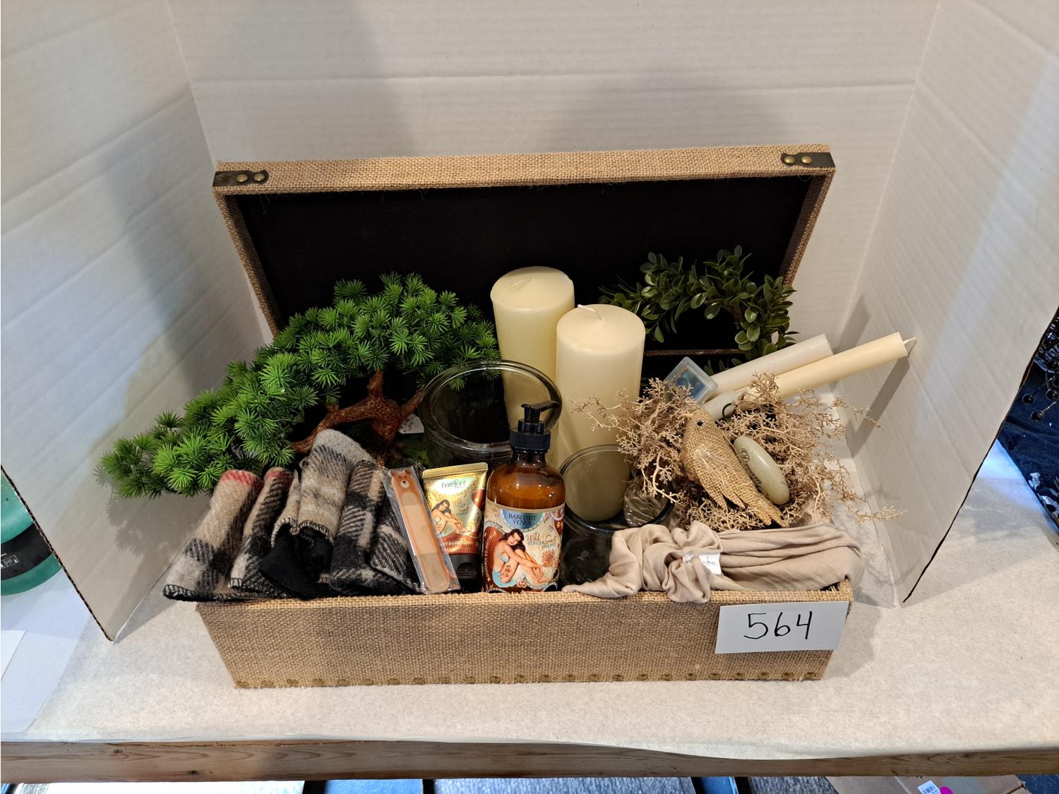 564 Jute Decor Box, Candles and Boot Cuffs (Unused)