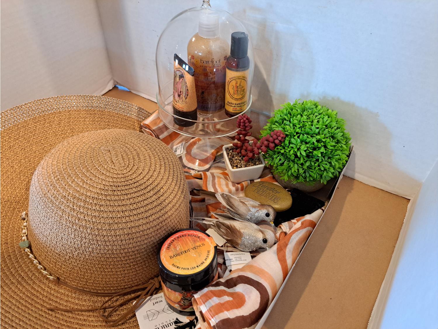 barefoot, decor, hat, glass stand