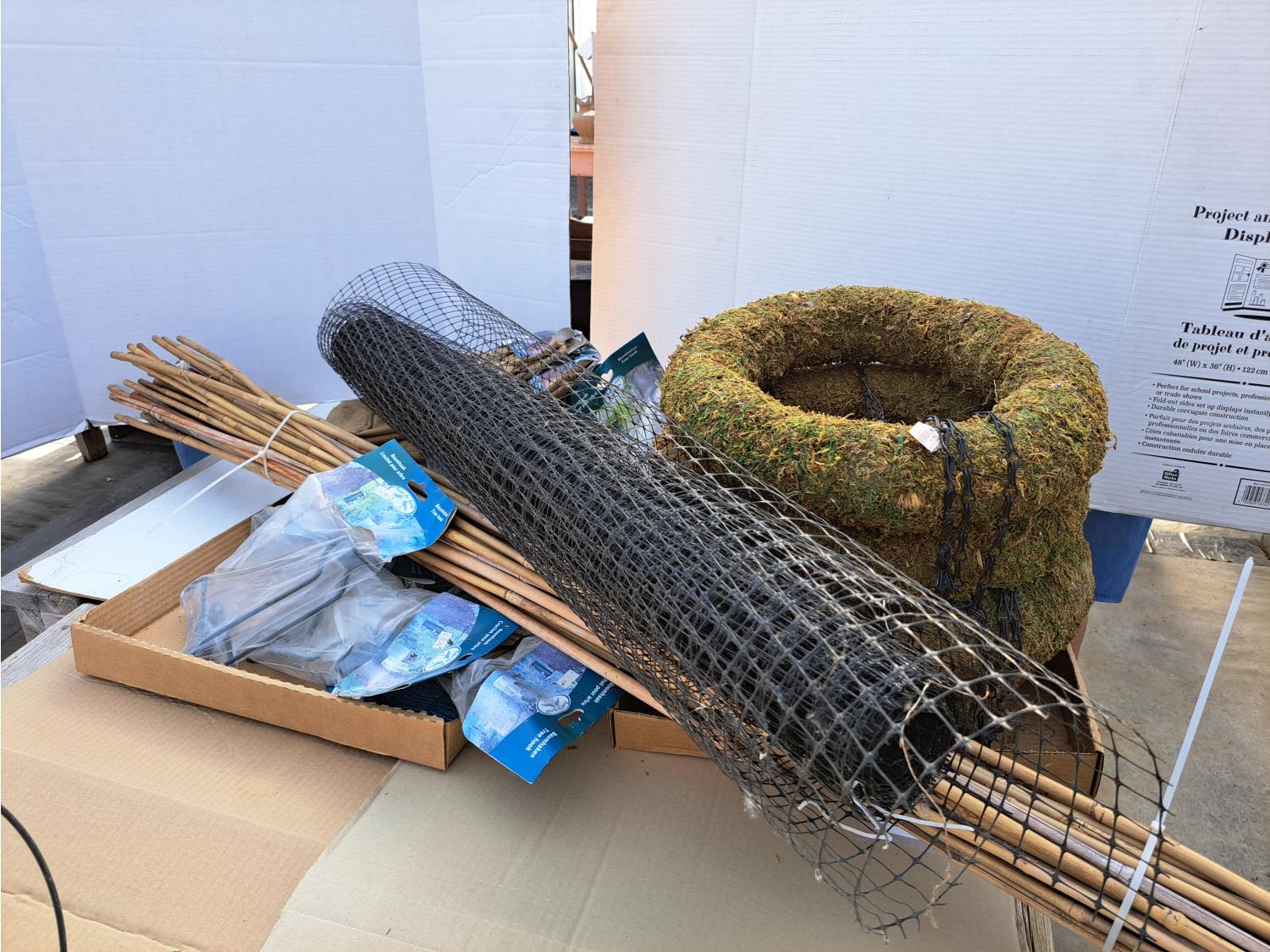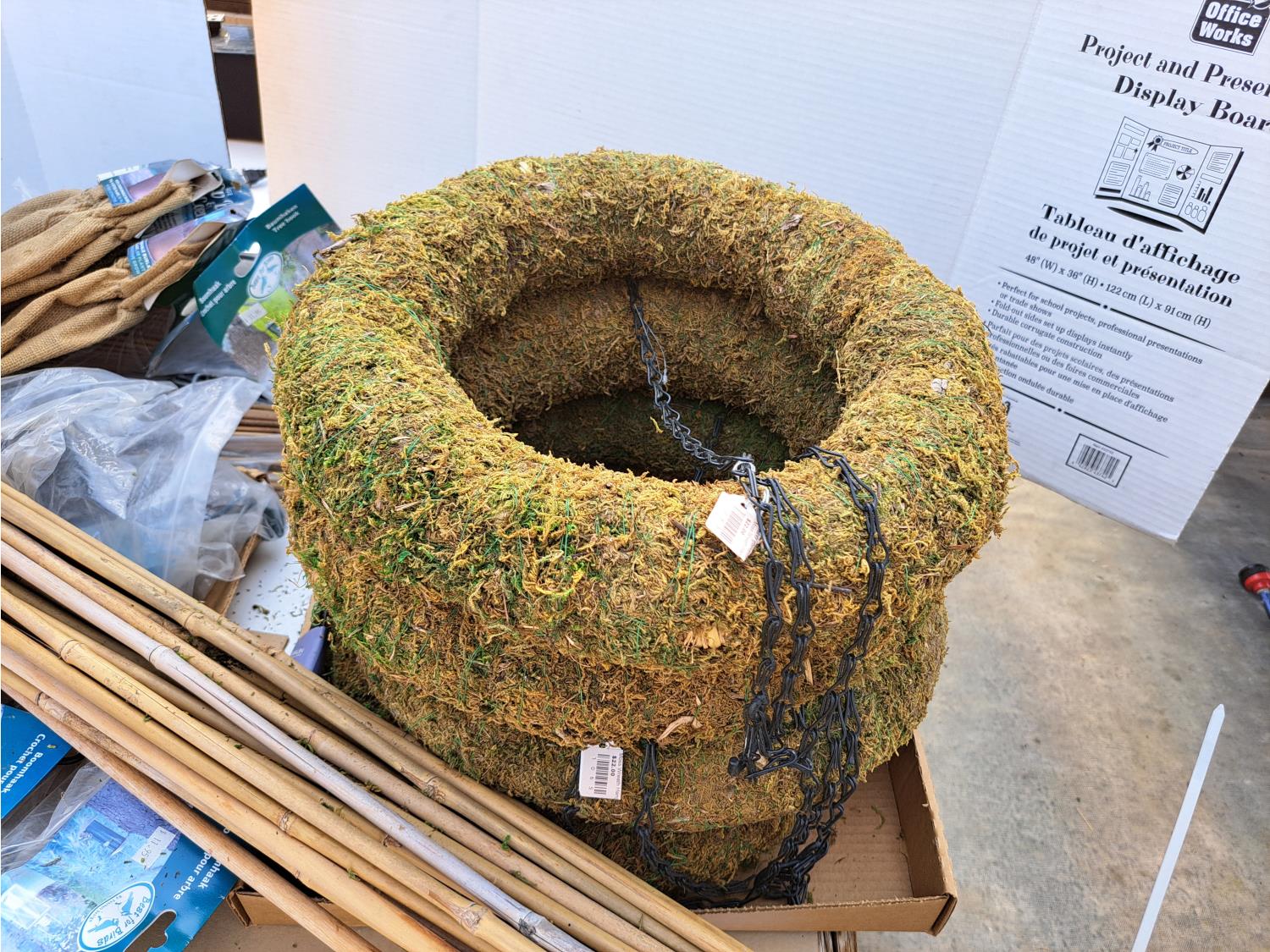 650 Plant Stakes, Moss Wreaths and Tree Hangers (Unused)