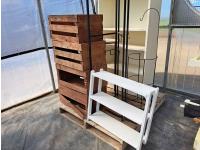 845 Shelving Unit, Wood Boxes and Hanging Display