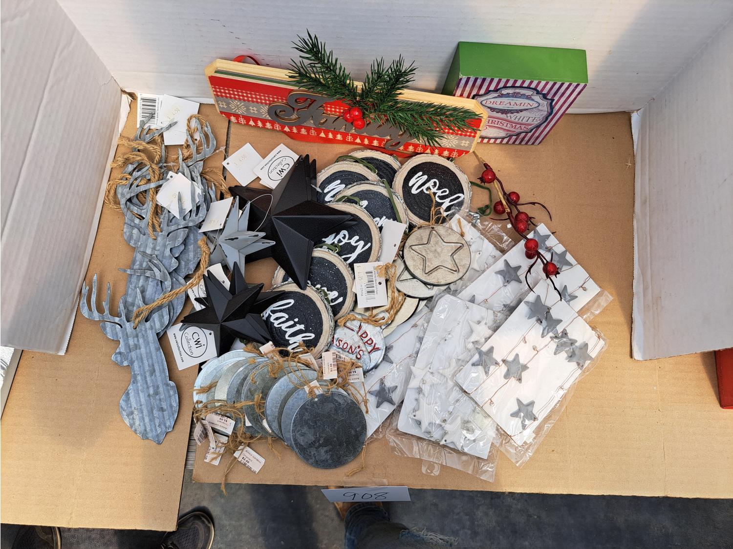 908 Sign, Tin Deer and Stars