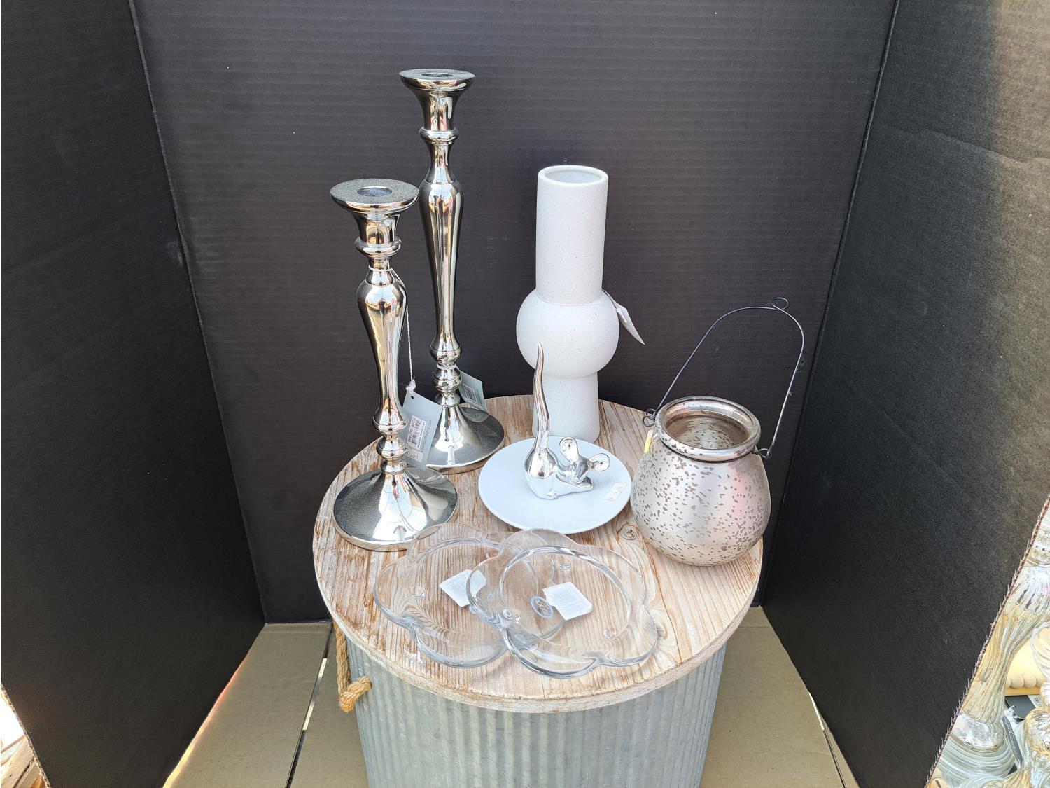 754 Storage Tin, Candle Stick and Vase (Unused)