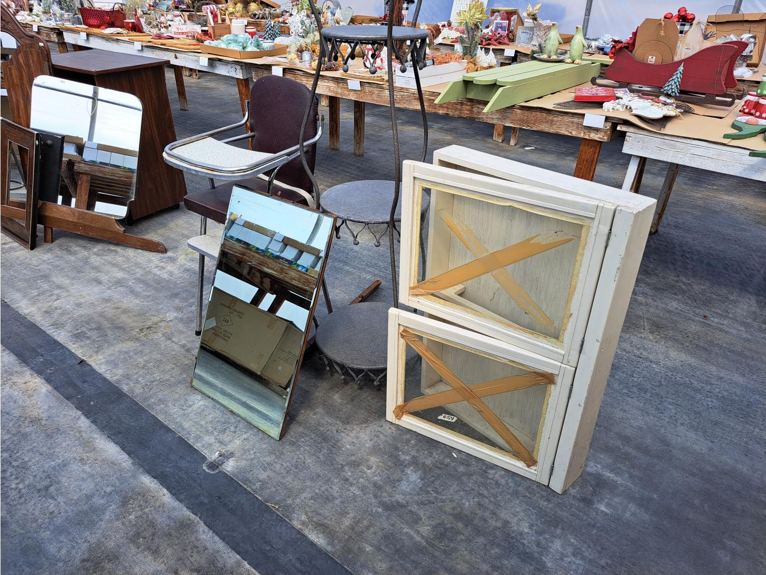 855 Vintage High Chair, Mirror, Shadow Box and Ornament Shelf
