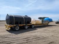 11 ft upper deck, 8 ft 6 inch wide, wood deck, stake pockets, rub rails, cargo winches, air brakes, Pattison sprayer mixing system, (2) Hold On 10,000 Litre Poly water tanks, 1 Enduraplas 13,000 Litre poly water tank, fuel tank, 15 GPM pump, hose, nozzle, air ride suspension, 255/70R22.5 tires