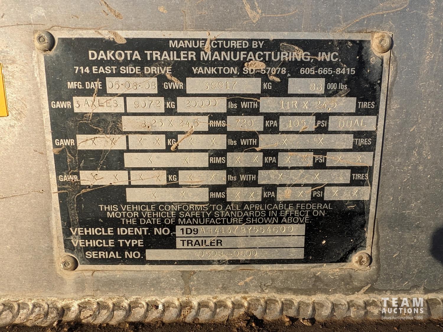 122 2009 Dakota 41 Ft TRI/A Aluminum Grain Trailer