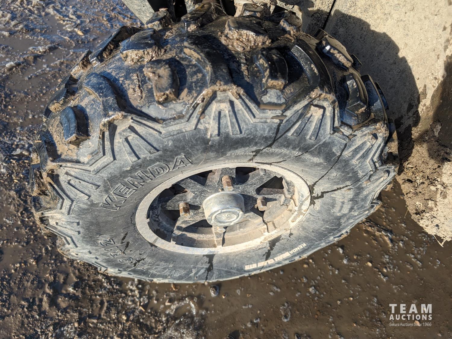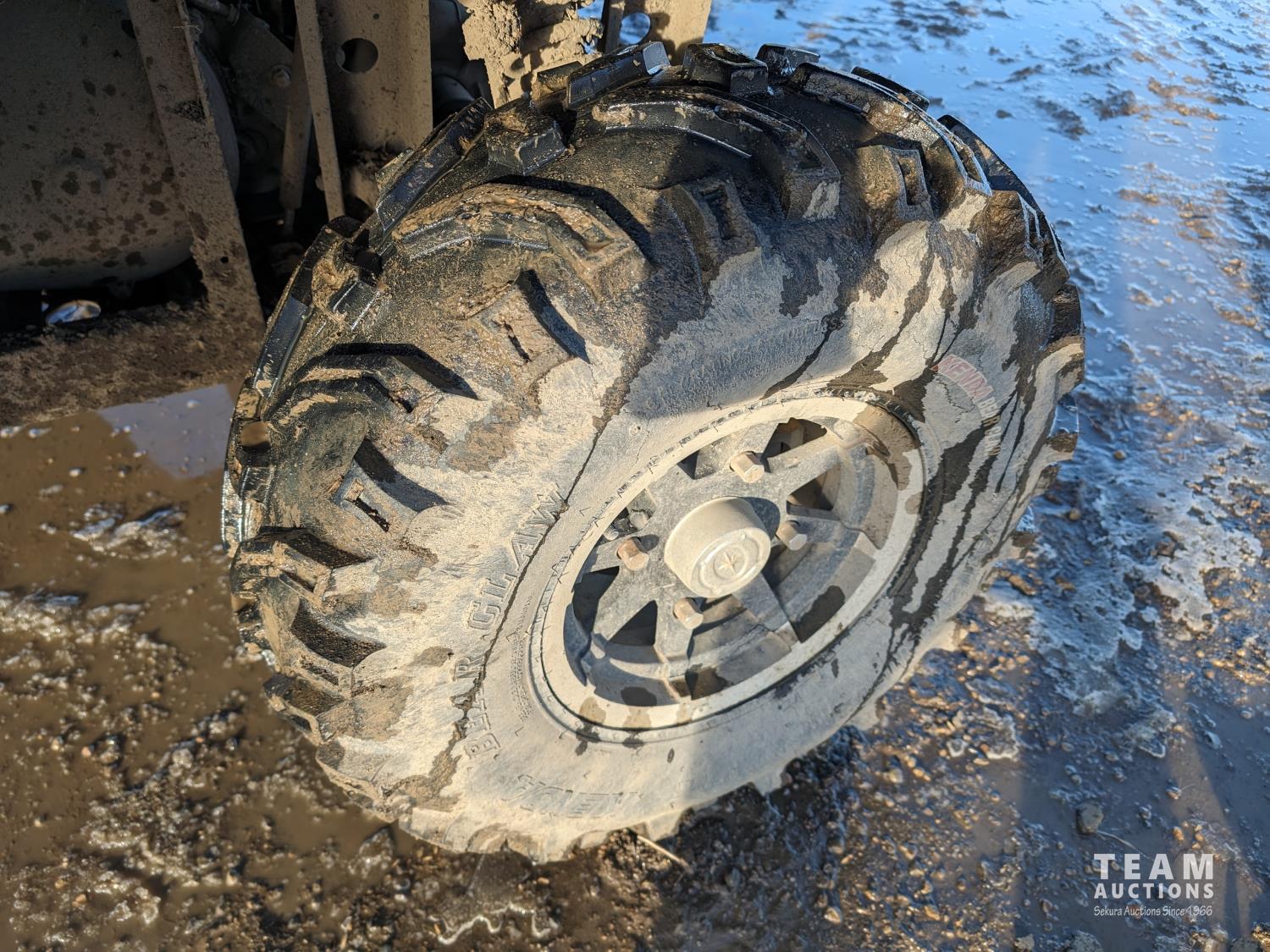 800 cc fuel injected water cooled engine, automatic transmission, Hi/Lo range, reverse, 2 passengers, power steering, manual dump box, hitch, 27X9-12 front tires, 27X11-12 rear tires