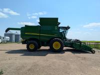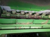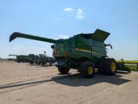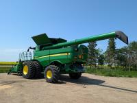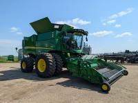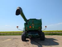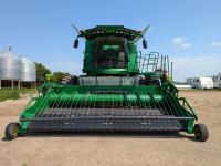 2015 John Deere 615P 15 ft pick-up header, variable speed reel, auto header height, fore & aft, reverser, rock trap, yield & moisture, auto fold grain tank extensions, 28.5 ft auger, premium lighting, Howard concaves, Active convave, Prodrive transmission, Advanced Powercast Tailboard Chopper/Spreader, A/C, radio, upgraded stereo, air ride seat, buddy seat, AutoGuidance Steering, 650/85R38 front tires, duals, 750/65R26 rear tires