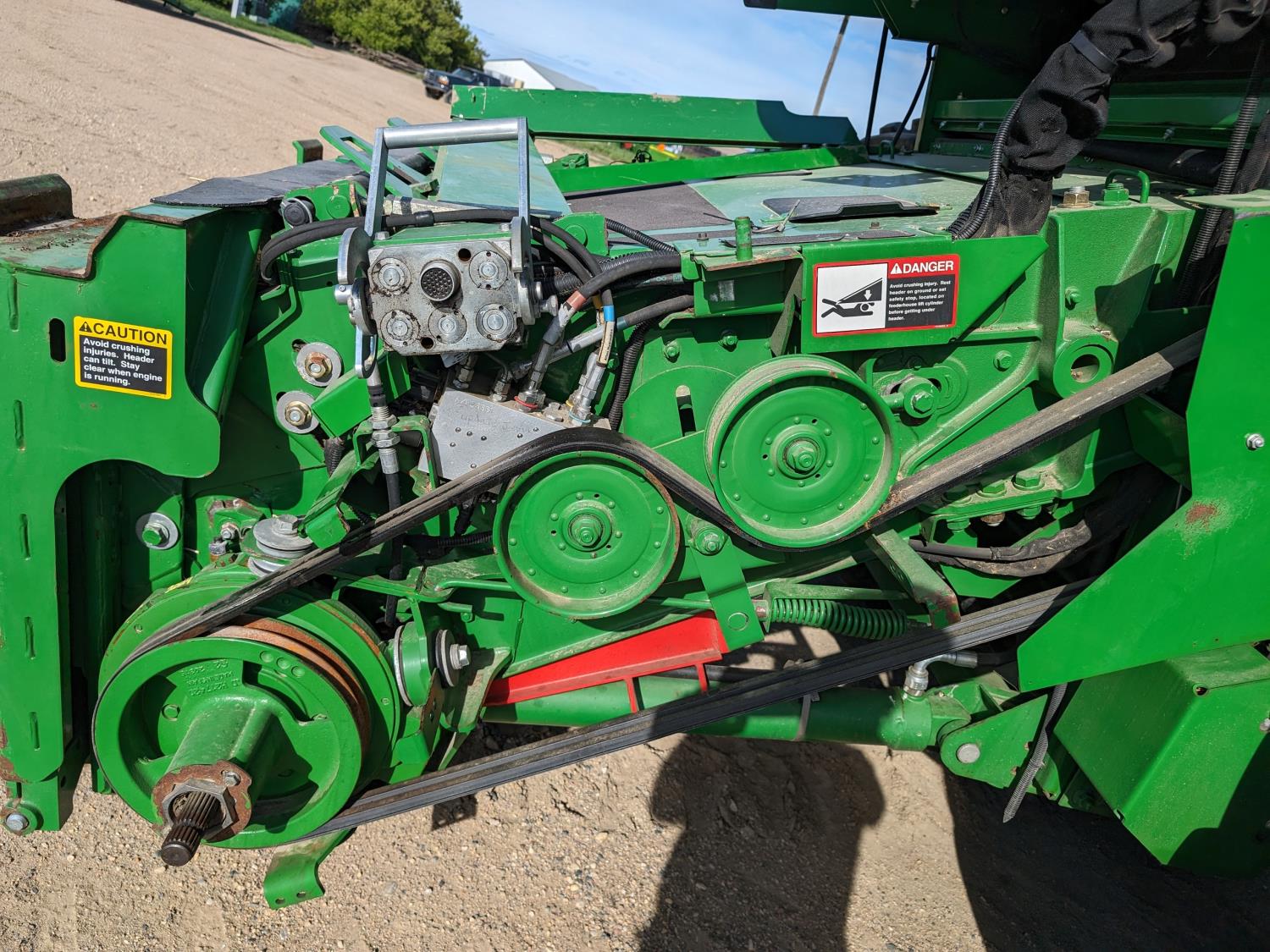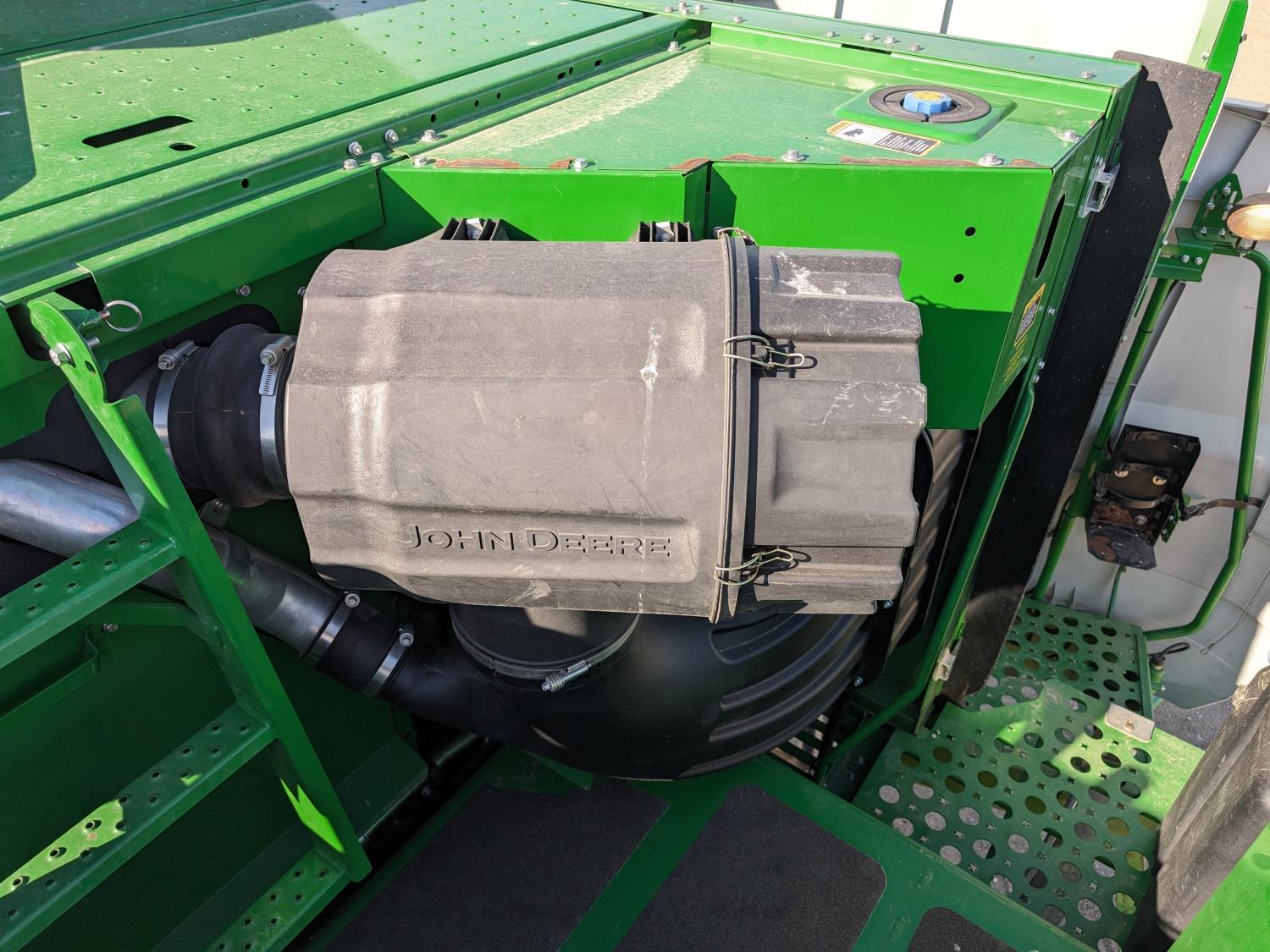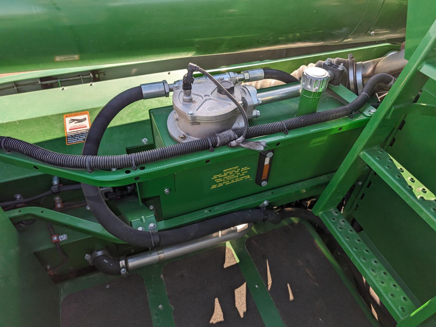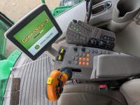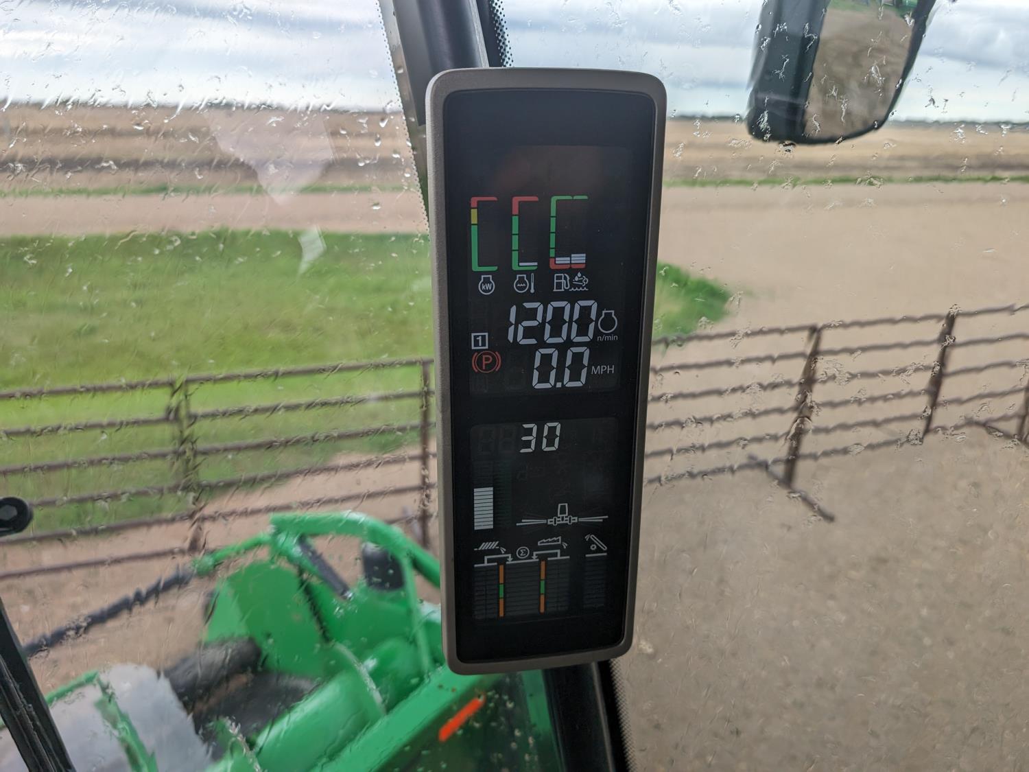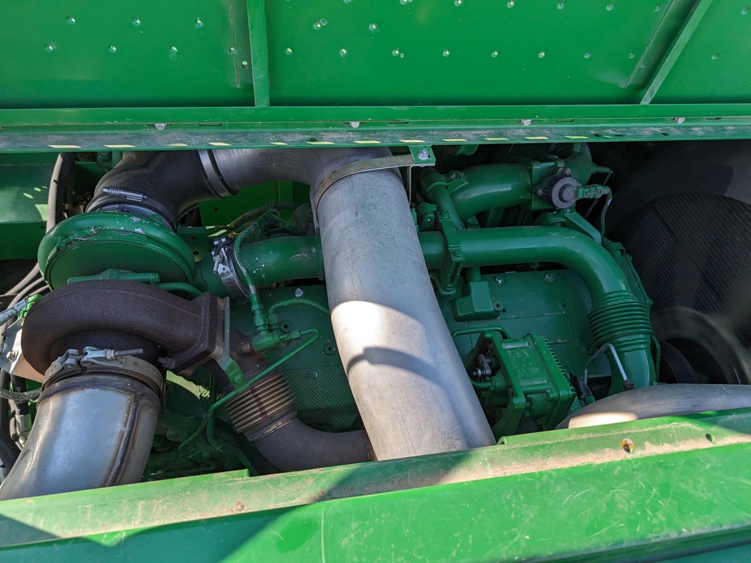 2015 John Deere 615P 15 ft pick-up header, variable speed reel, auto header height, fore & aft, reverser, lateral tilt, rock trap, yield & moisture, auto fold grain tank extensions, 28.5 ft auger, premium lighting, Active convave, Prodrive transmission, Advanced Powercast Tailboard Chopper/Spreader, A/C, radio, upgraded stereo, air ride seat, buddy seat, AutoGuidance Steering, 650/85R38 front tires, duals, 750/65R26 rear tires