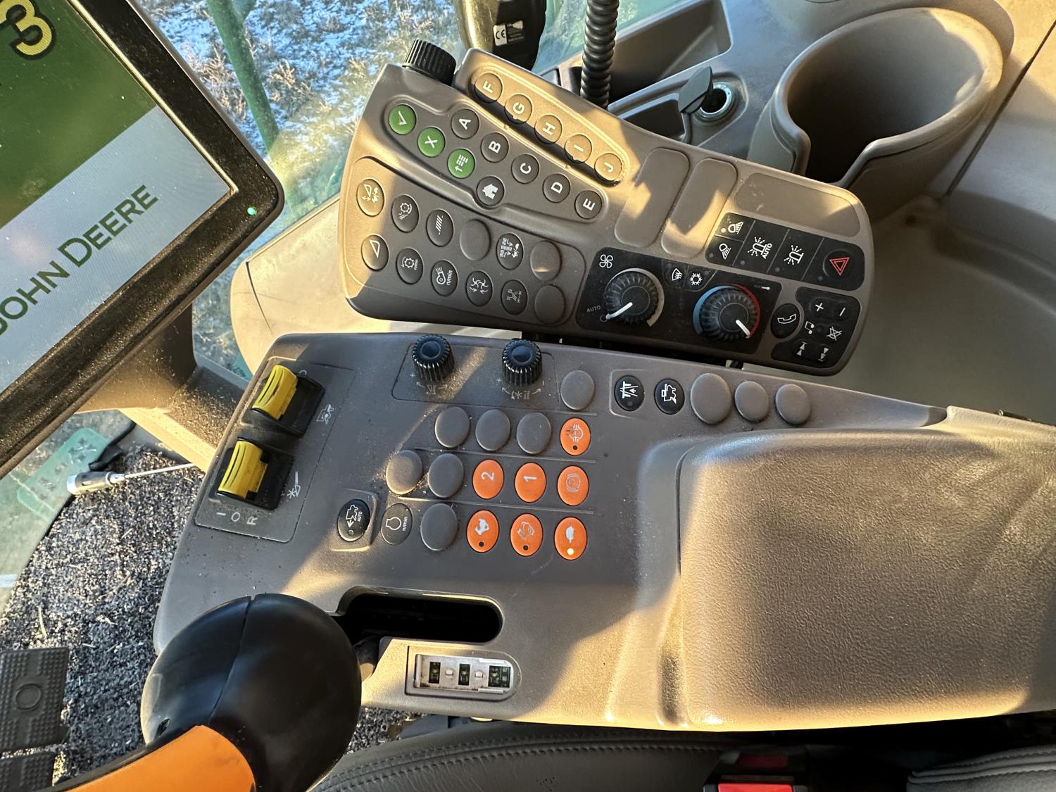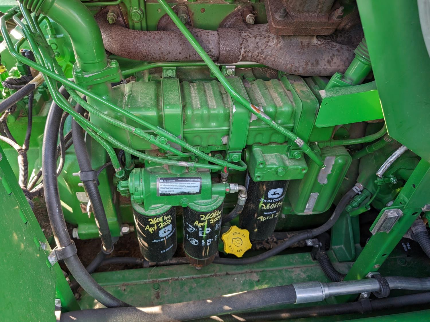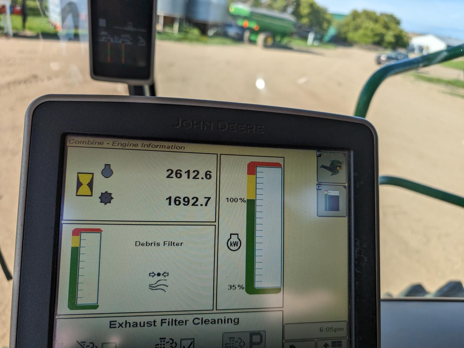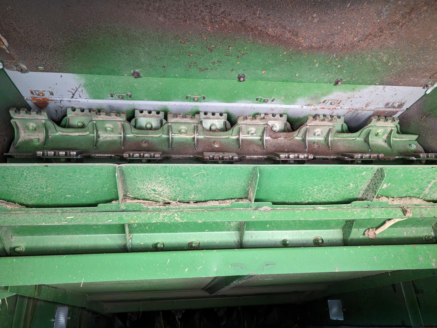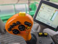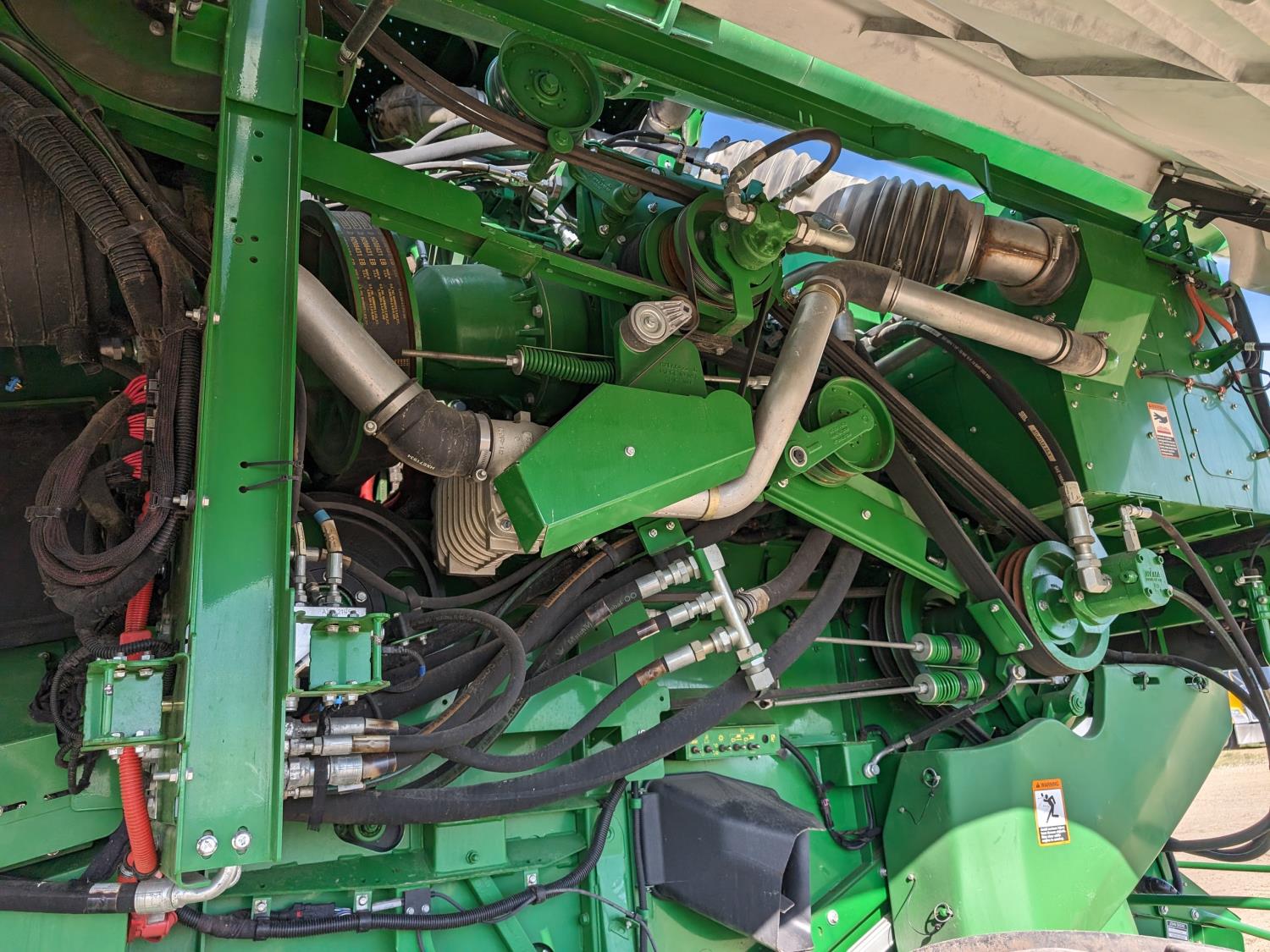 2015 John Deere 615P 15 ft pick-up header, variable speed reel, auto header height, fore & aft, reverser, lateral tilt, rock trap, yield & moisture, auto fold grain tank extensions, 28.5 ft auger, premium lighting, Active convave, Prodrive transmission, Advanced Powercast Tailboard Chopper/Spreader, A/C, radio, upgraded stereo, air ride seat, buddy seat, AutoGuidance Steering, 650/85R38 front tires, duals, 750/65R26 rear tires