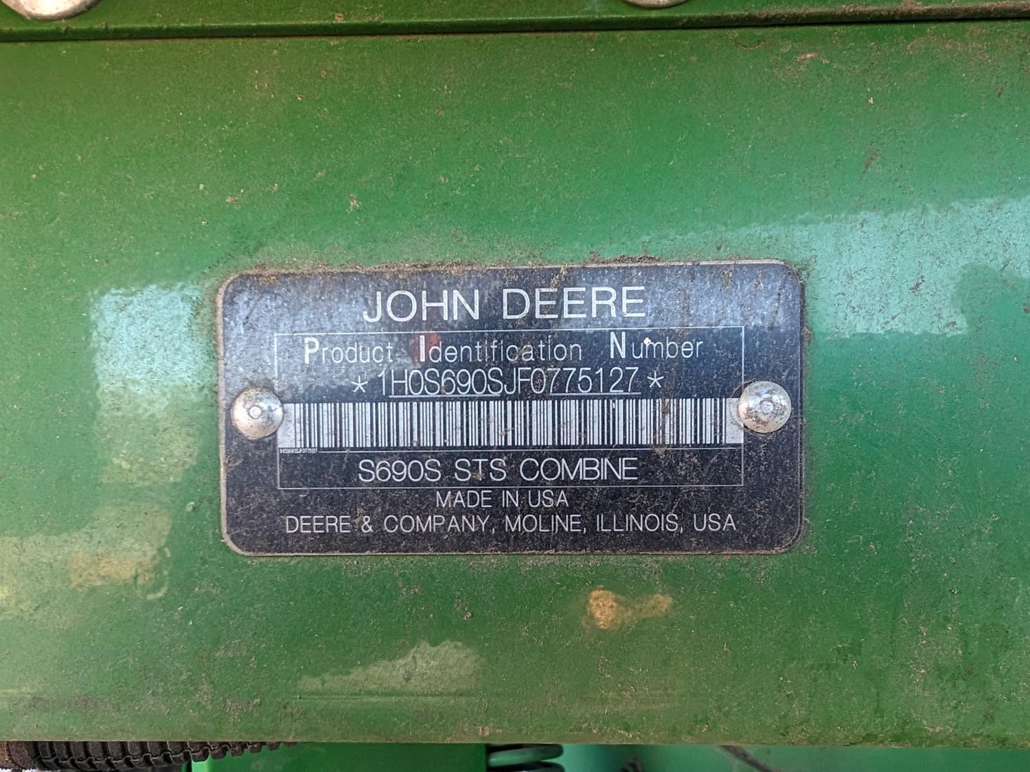 270 2015 John Deere S690 Class 9 Combine