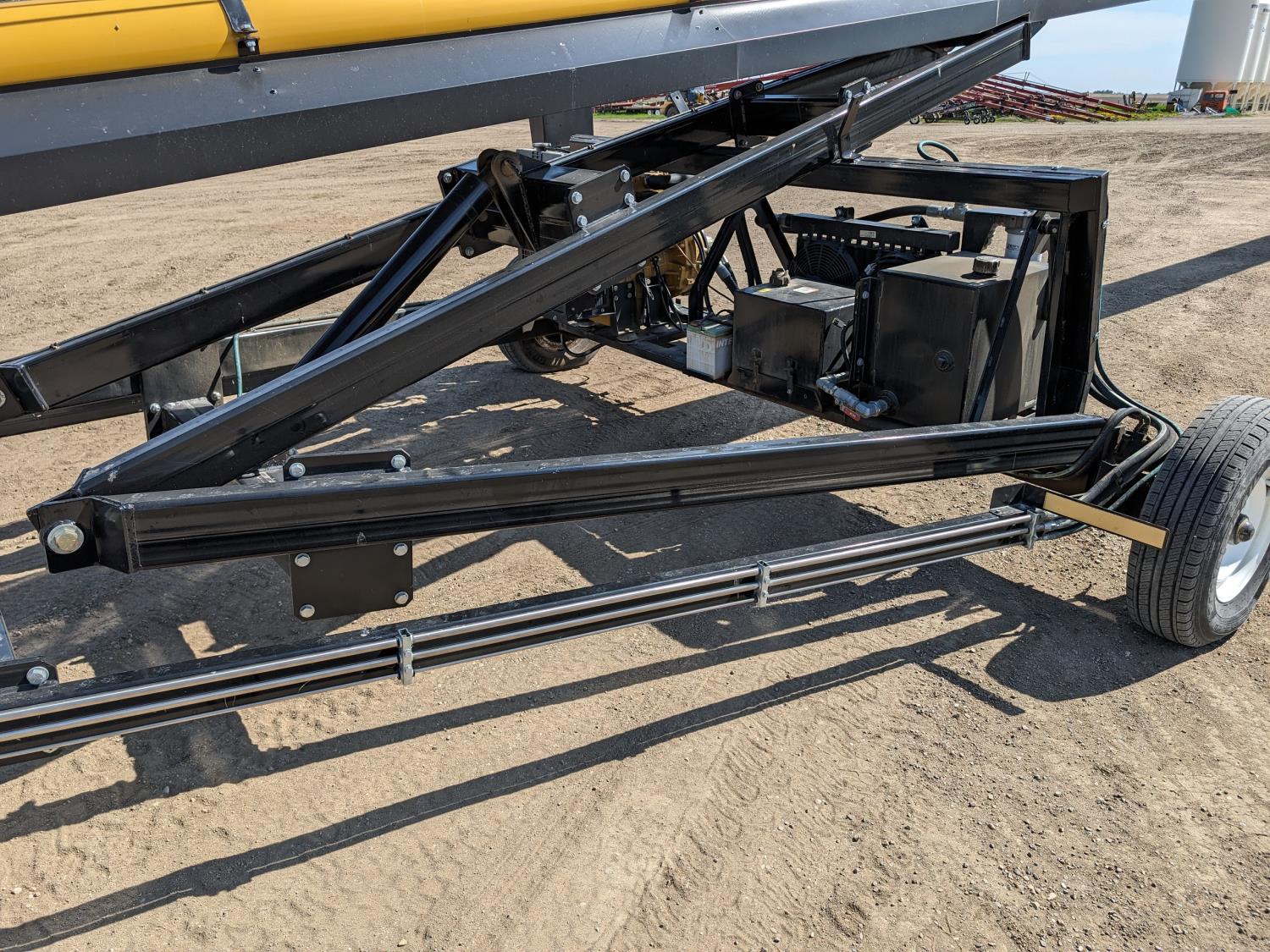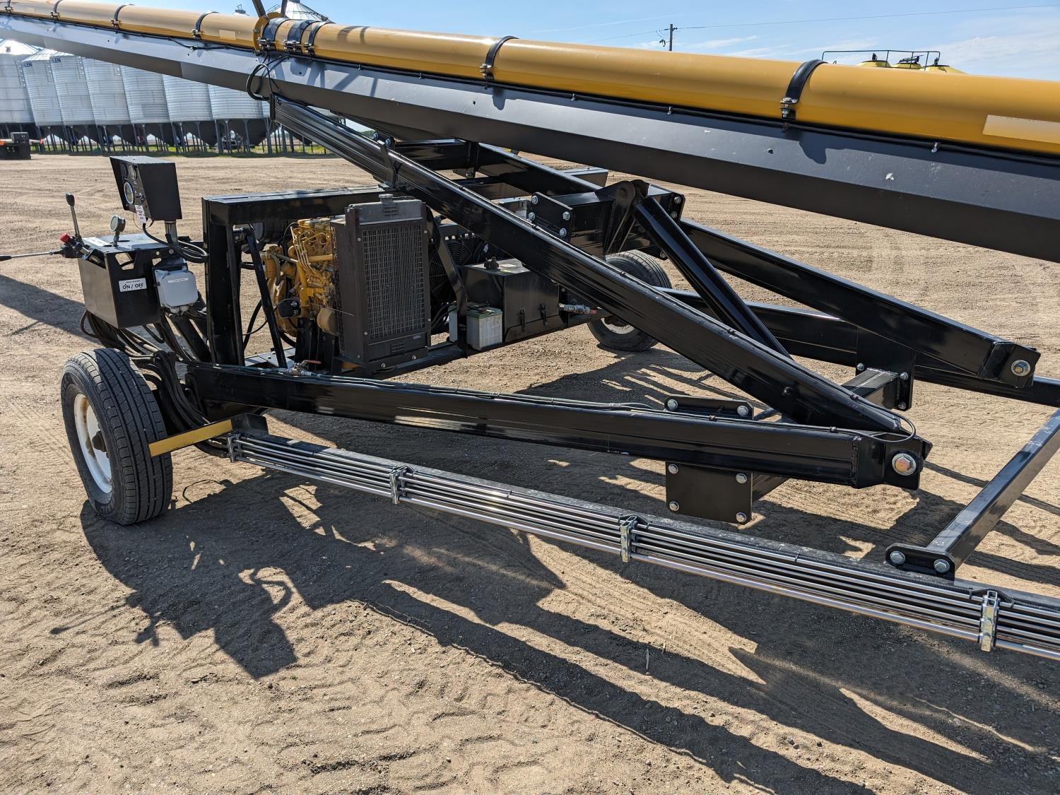 Caterpillar 67 HP electric start diesel engine, hydraulic swing transfer drive, swing hydraulic winch, hydraulic conveyor mover, flex spout, work lights, reverser, hydraulic lift