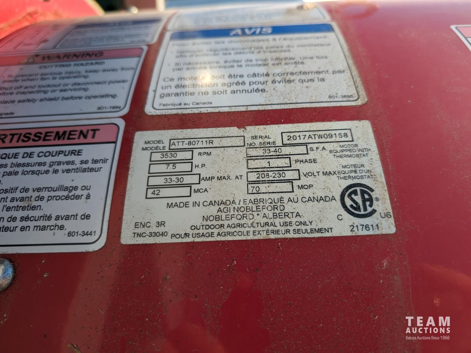 372 2017 AGI ATT-80711R 7.5 HP Aeration Fan