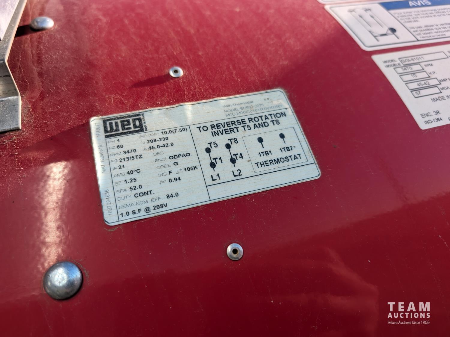 WEG ED503-2075 motor, 208-230 V, 1 Ph