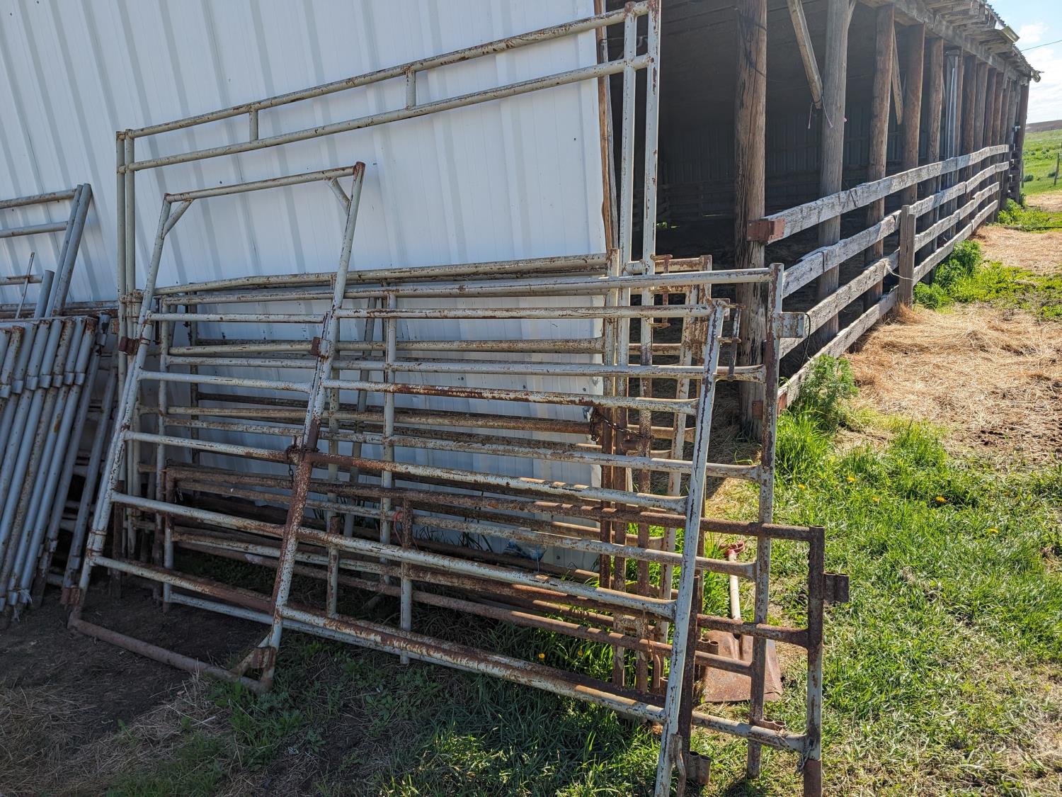43 (3) 9 Ft 8 Inch Cattle Panels & (1) Panel w/ Man Gate & (1) Panel W/Full Gate