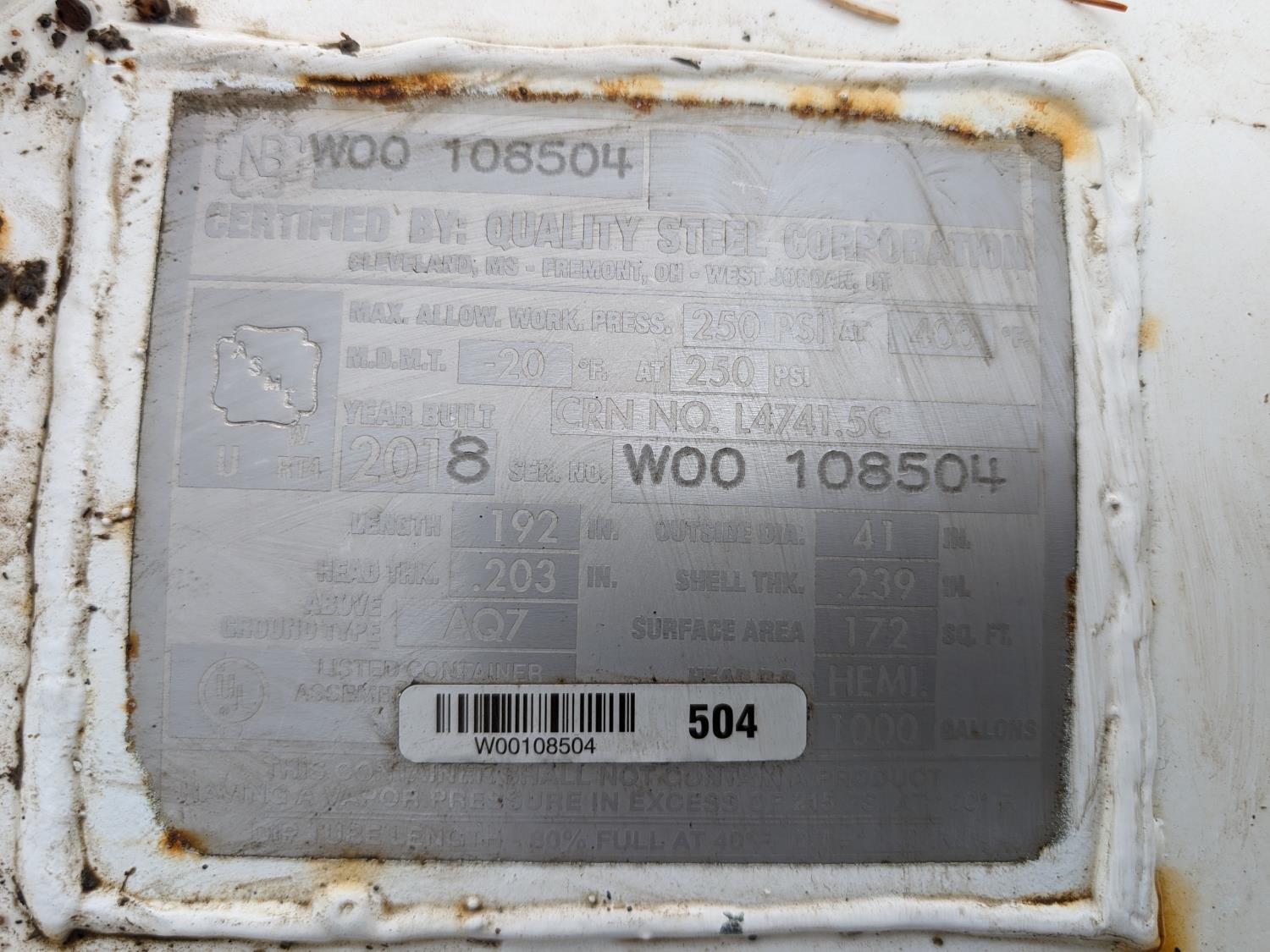 128 2018 3785 Litre Propane Tank