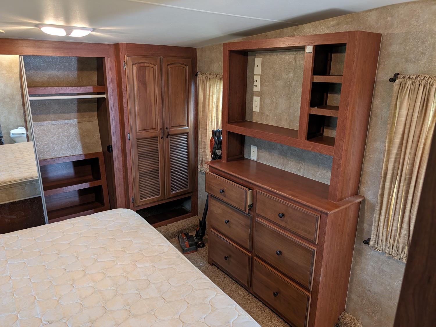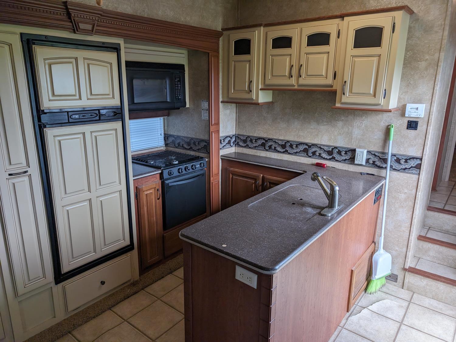 4 slides, fridge, stove, microwave, mater bedroom