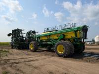 12 inch spacing, double shoot John Deere openers, 3 inch rubber packers, Blockage sensor one per tower, truset depth control, conserva pak, fully wired for cameras,, Air Cart: 4 compartments, loading conveyor, double fan, sectional control, 8 rollers, rear hitch, dual 900/75R32 front tires, 900/75R32 rear tires, 40000 acres seeded