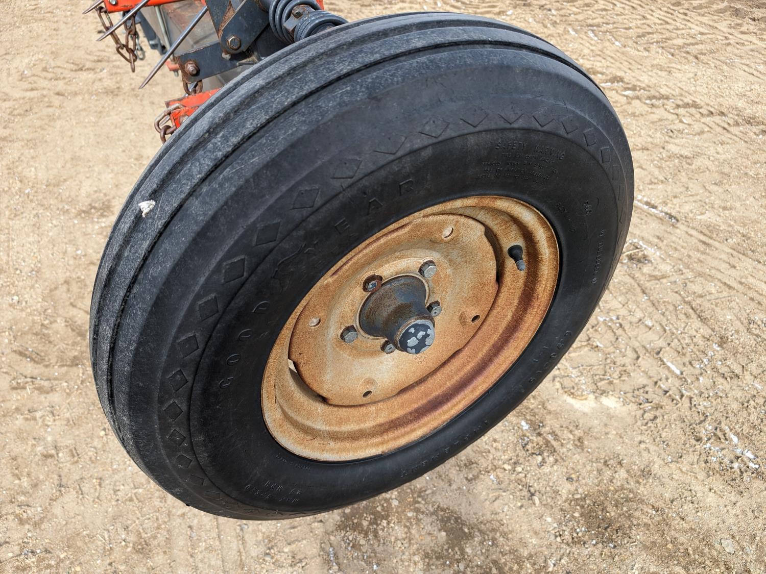 5 bars, 1/2 inch tine diameter, 13 inch tine length, manual tine adjustment, 6.70-15 wing tires