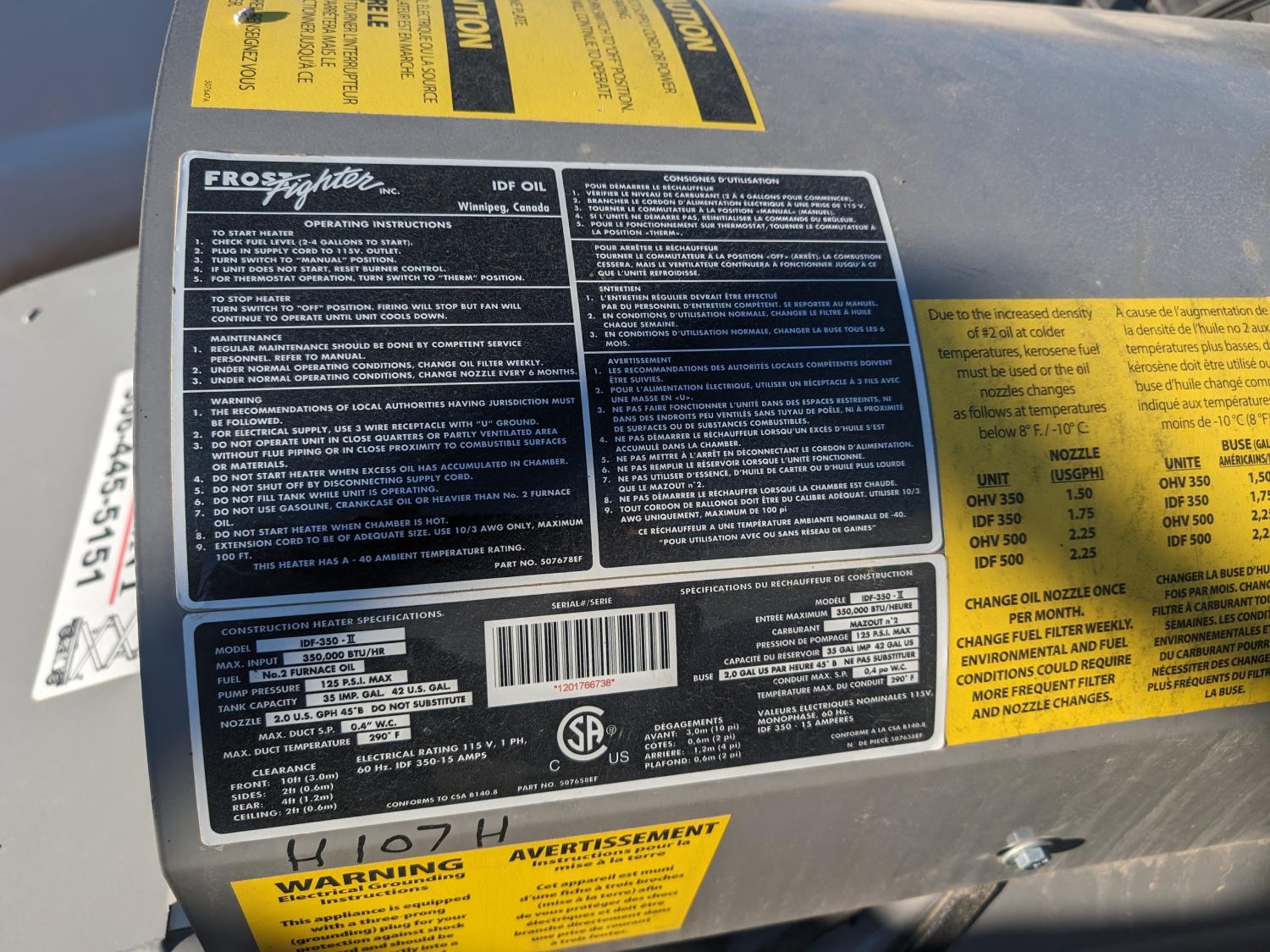 146 Frost FIghter IDF-350-II 350,000 BTU Diesel Heater
