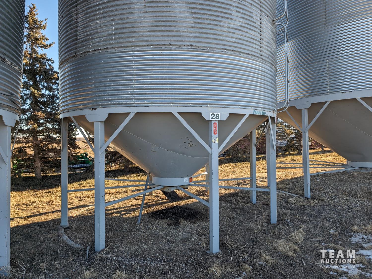 3,743± bu capacity, Prairie Steel Products 8 leg hopper, ladder, lid opener