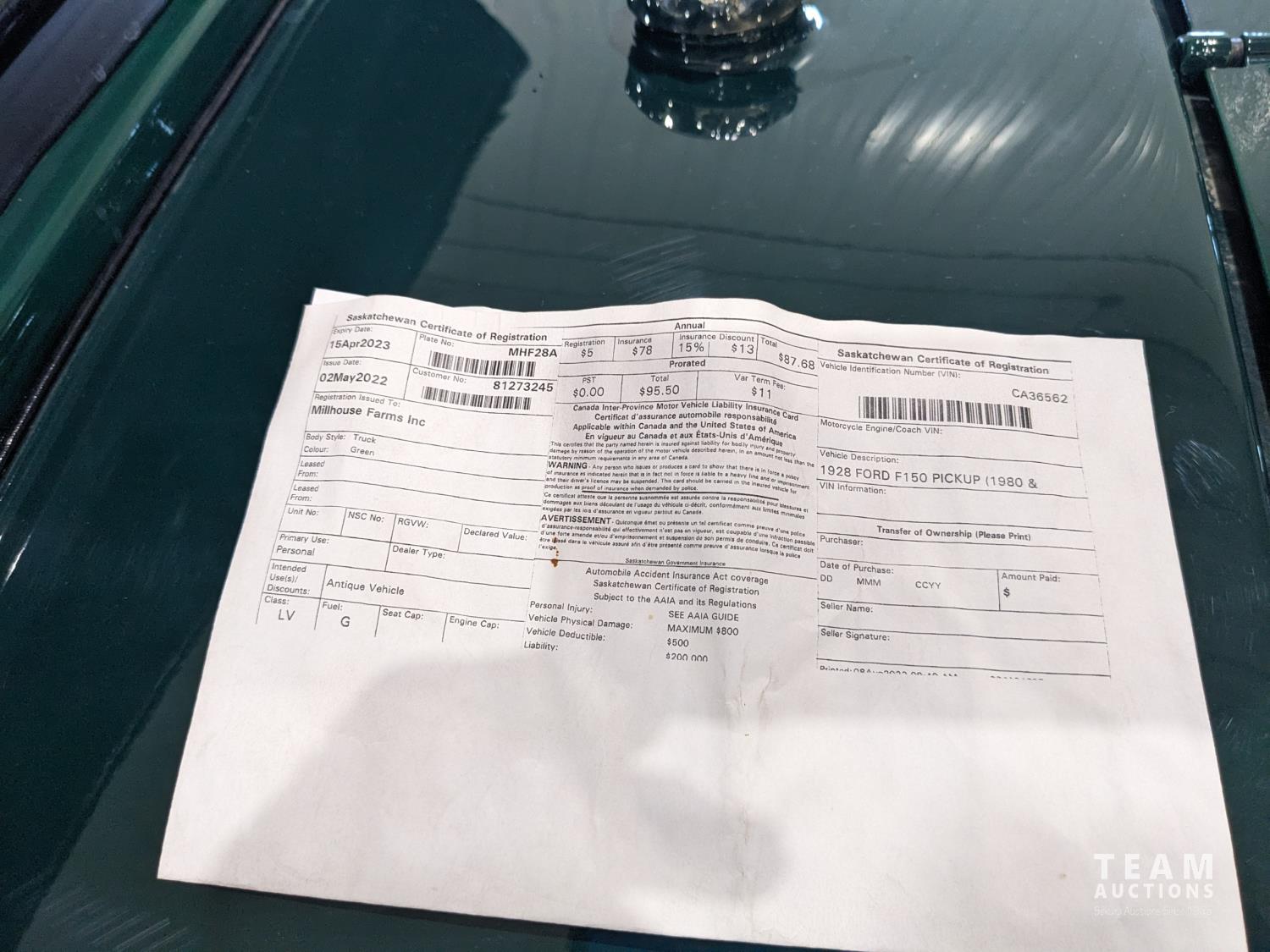 DISCLAIMER: The information contained in this folder has been provided by the consignor and has not been verified by Team Auctions.