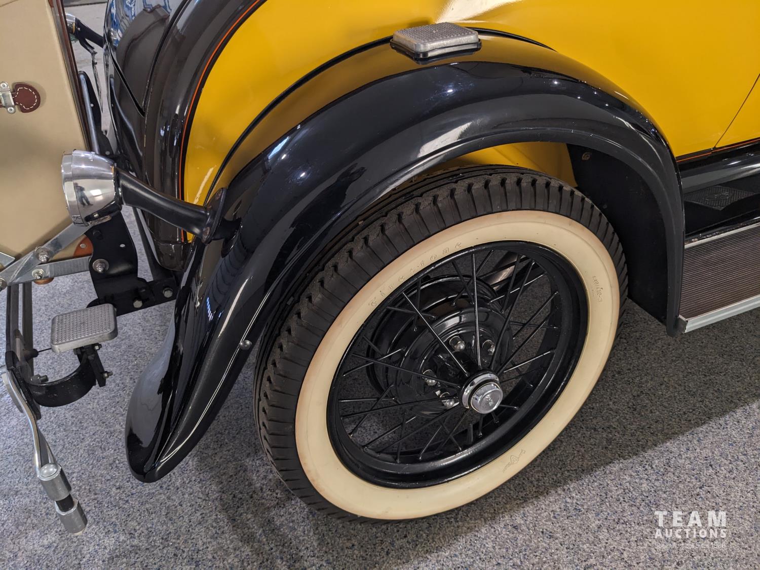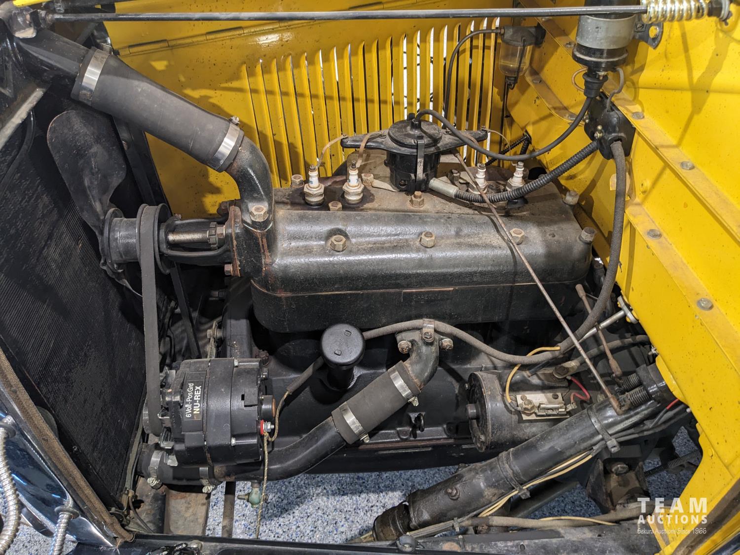 4 Cylinder gas engine, three speed transmission. 6 volt alternator upgrade, (2) spare tires, 4.40/4.50-21 white wall tires
