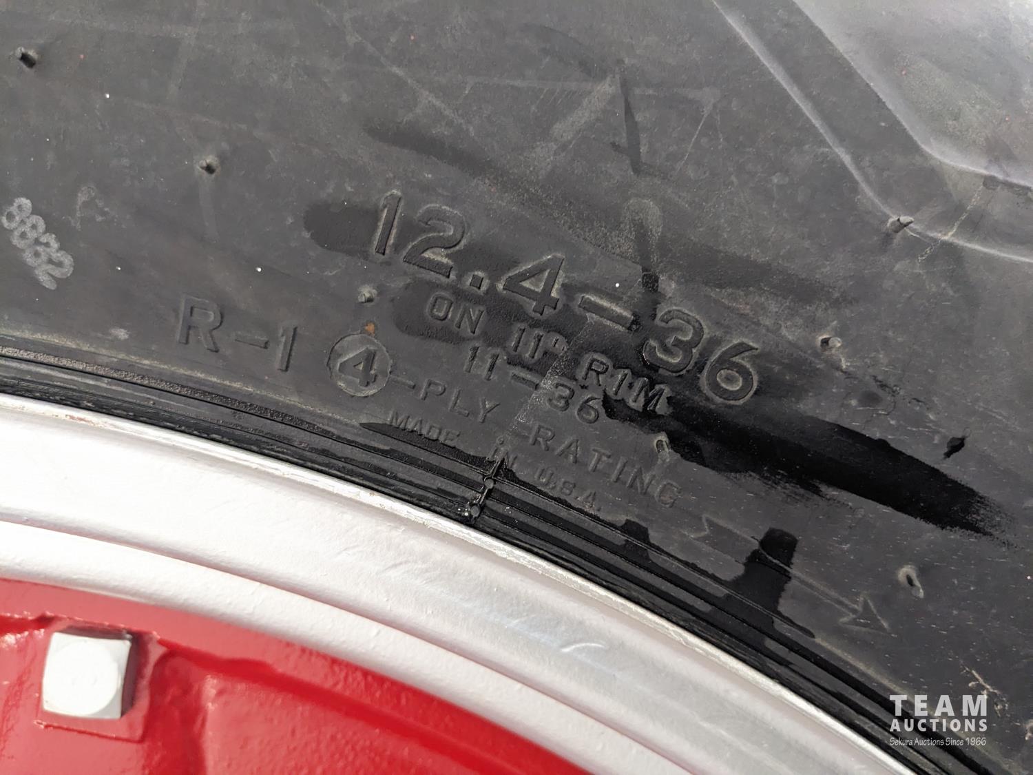 4 cylinder gas engine, 4 speed transmission, 540 PTO, belt pulley, rear weights, 5.00-15 front, 12.4-36 rear tires (all new front and rear tires)