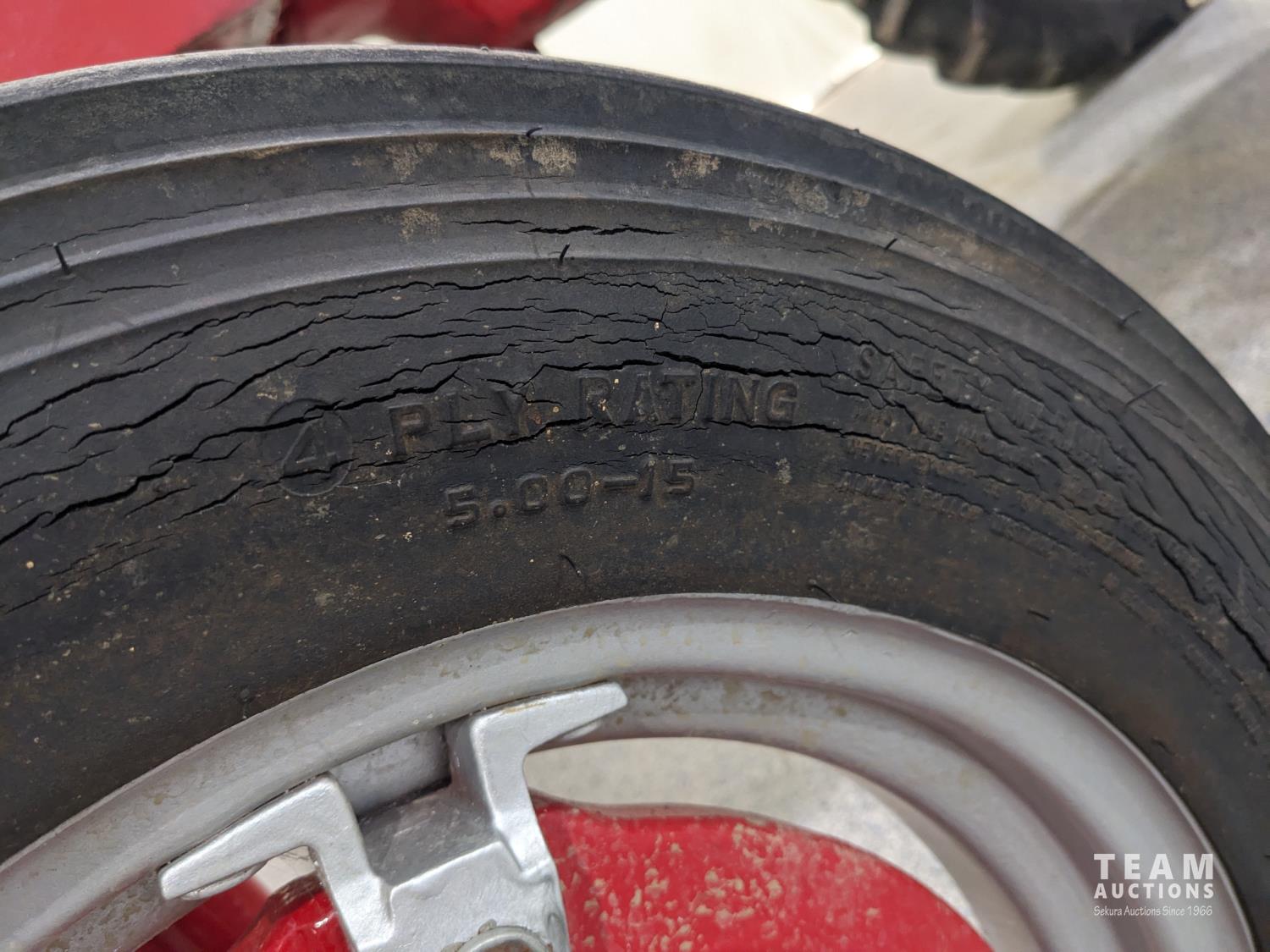 4 Cylinder gas engine, 4 speed transmission, 540 PTO, rear wheel weights, 5.00-15 front, 11.2-38 rear tires (all new front and rear tires)