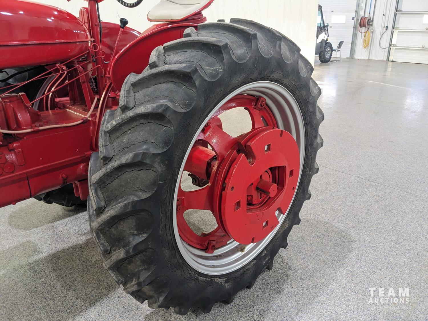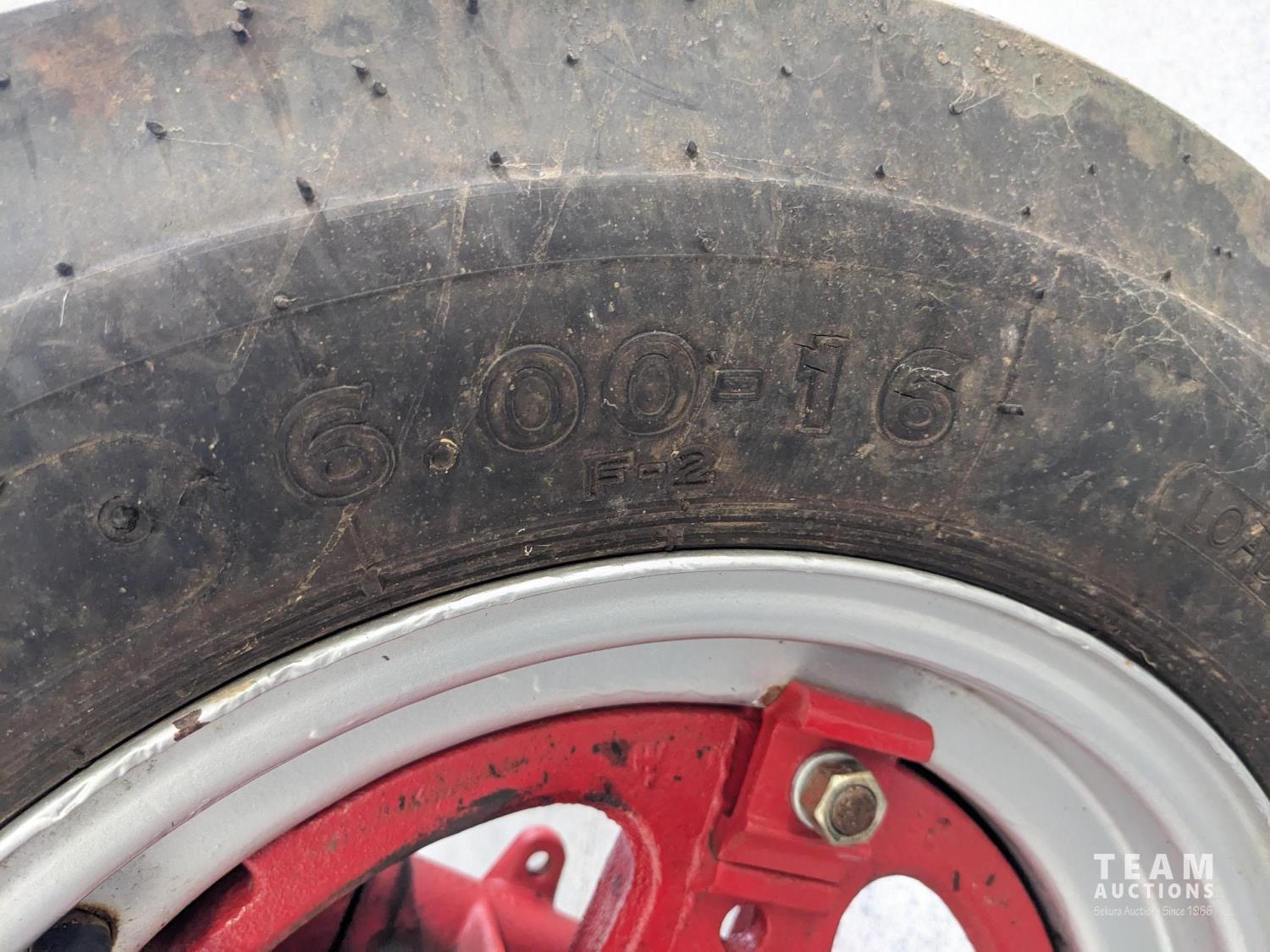 4 cylinder gas engine, 5 speed transmission, 540 PTO, belt pulley, rear wheel weights, 6.00-16 front, 13.6/12-38 rear tires