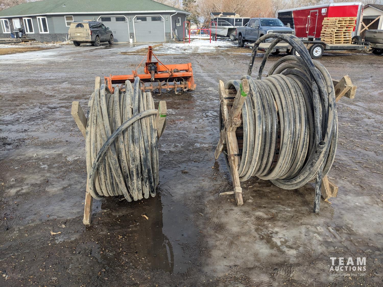 1476 (1) Reel of 1-1/4 Inch Poly Hose, (1) Reel of 1 Inch Poly Hose