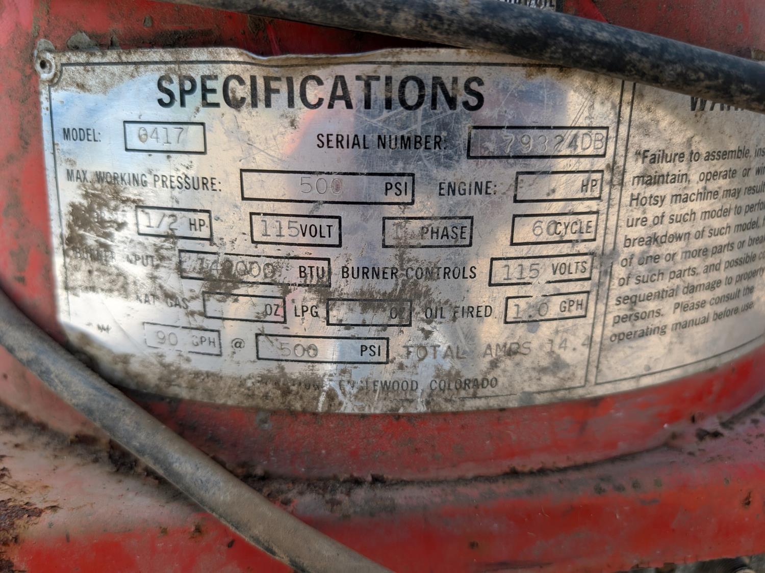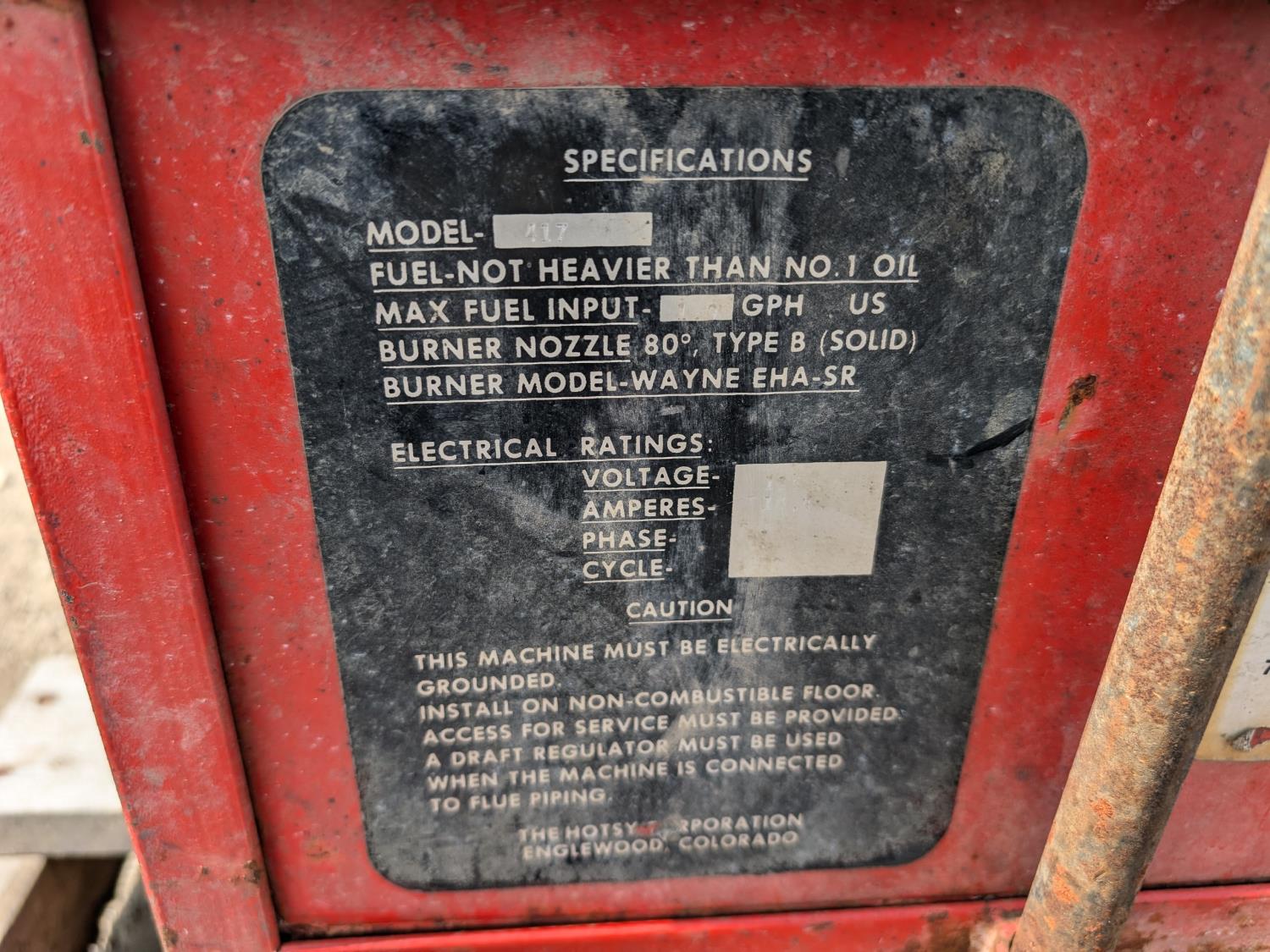 Working condition of Hotsy unknown, Building 2