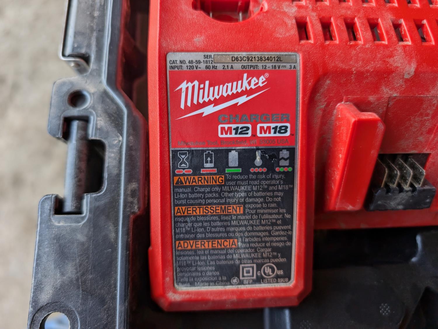 48-59-1812 M18 & M12 Multi Voltage Charger, 48-59-2401 M18 Lithium-ion XC5.0 Battery, storage case