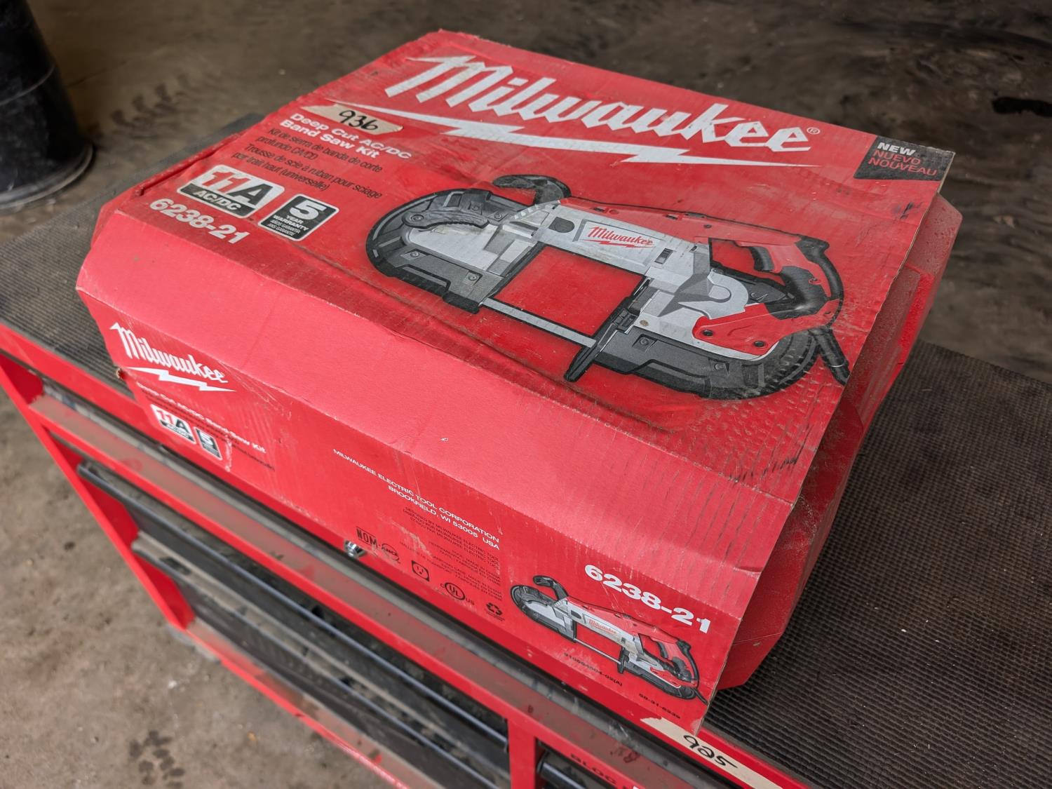1377 Milwaukee 6238-21 Corded Deep Cut AC/DC Band Saw Kit (Unused)