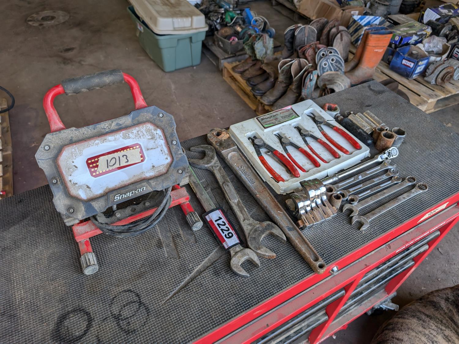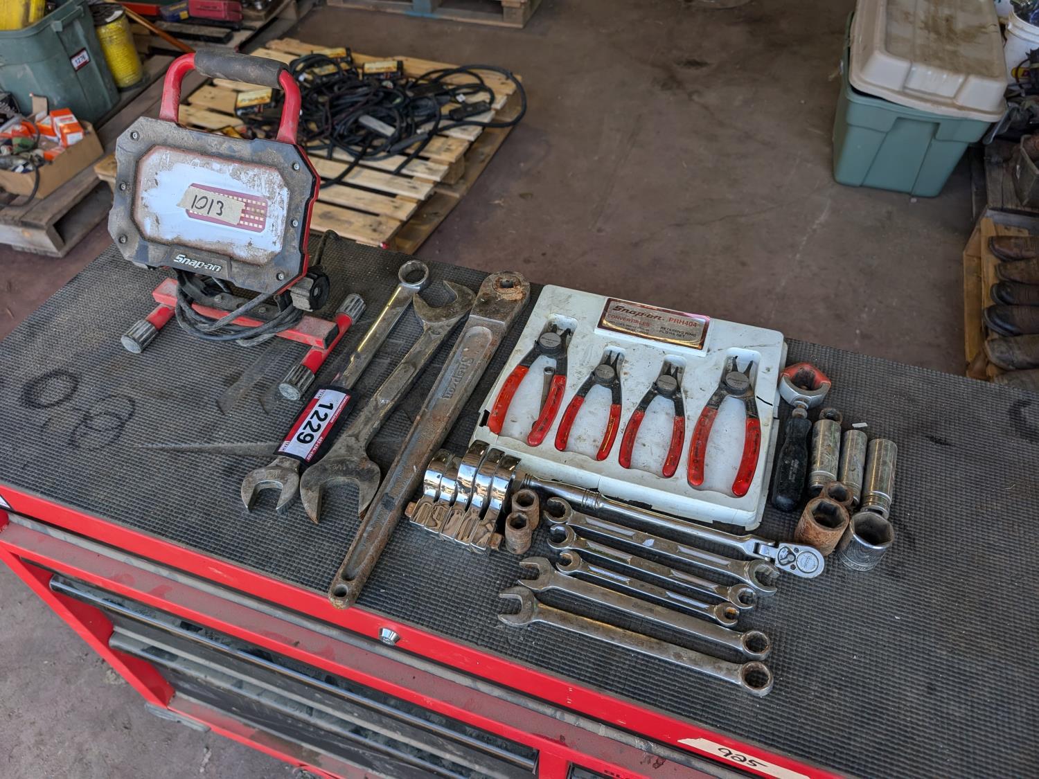 snap ring pliers set, work light, wrenches, sockets