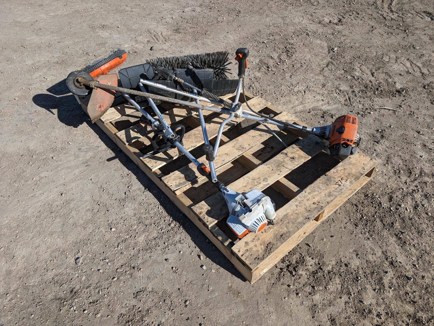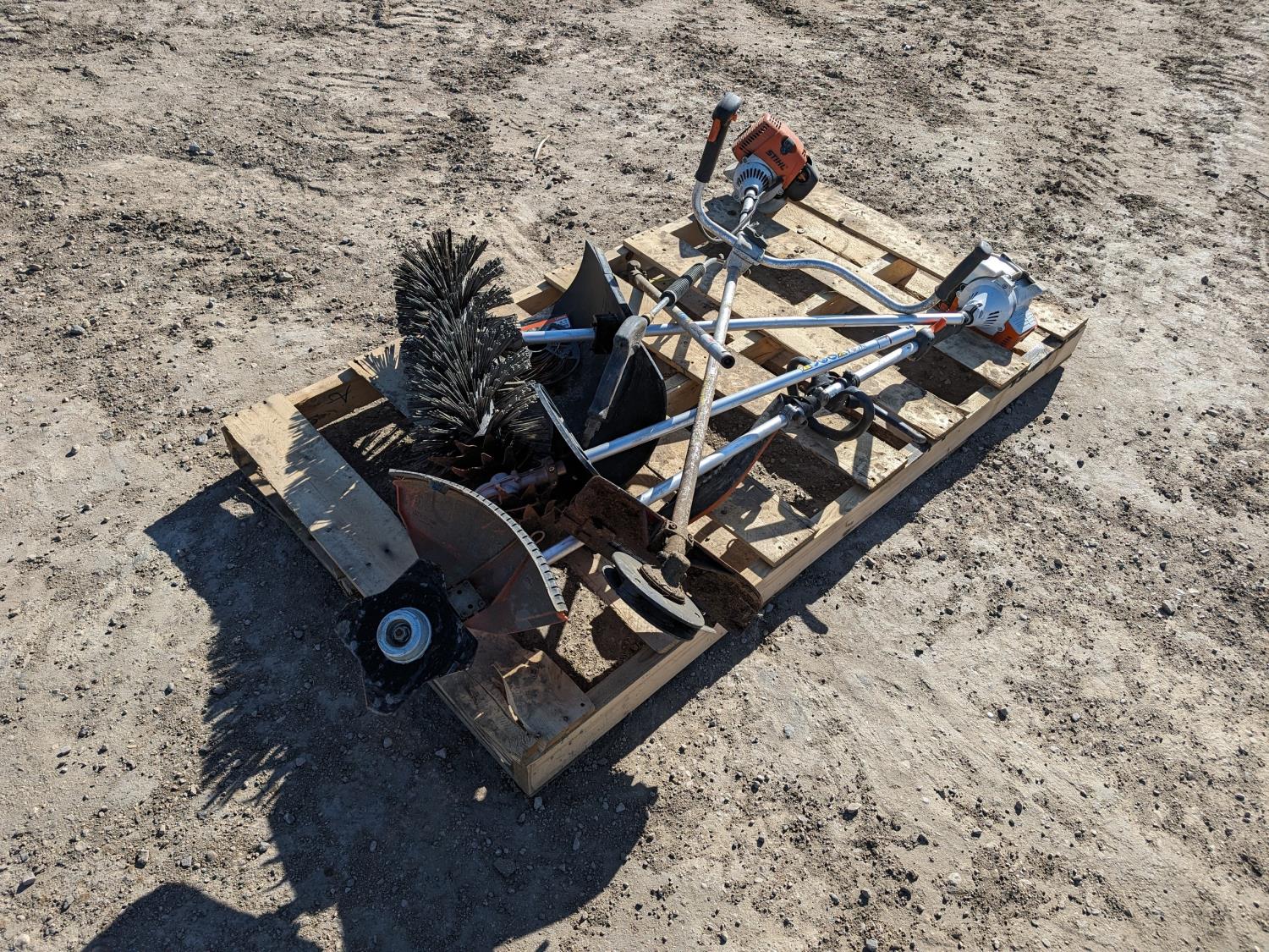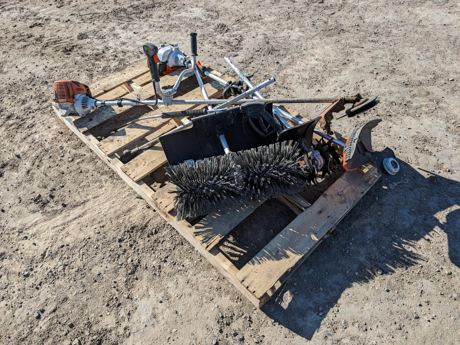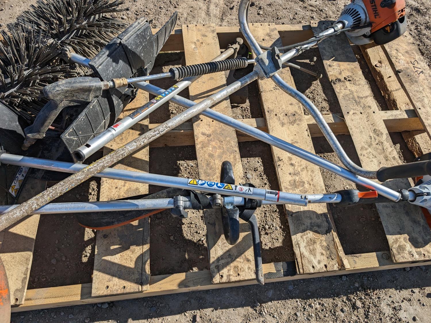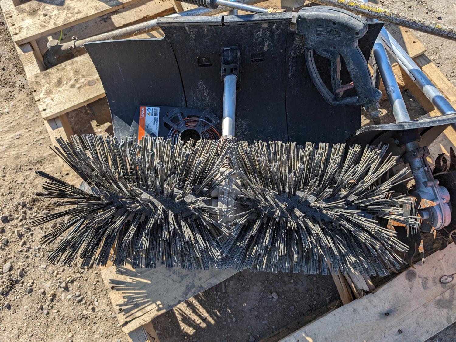 Stihl FS130 brush cutter, sweeper attachment, rotary tiller attachment, brush cutter attachment