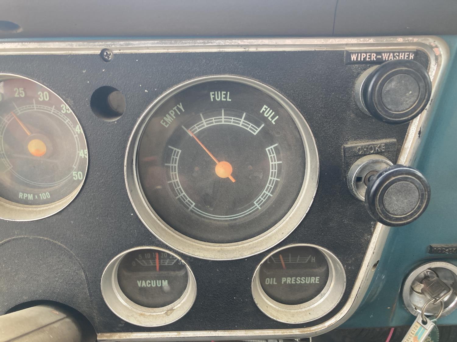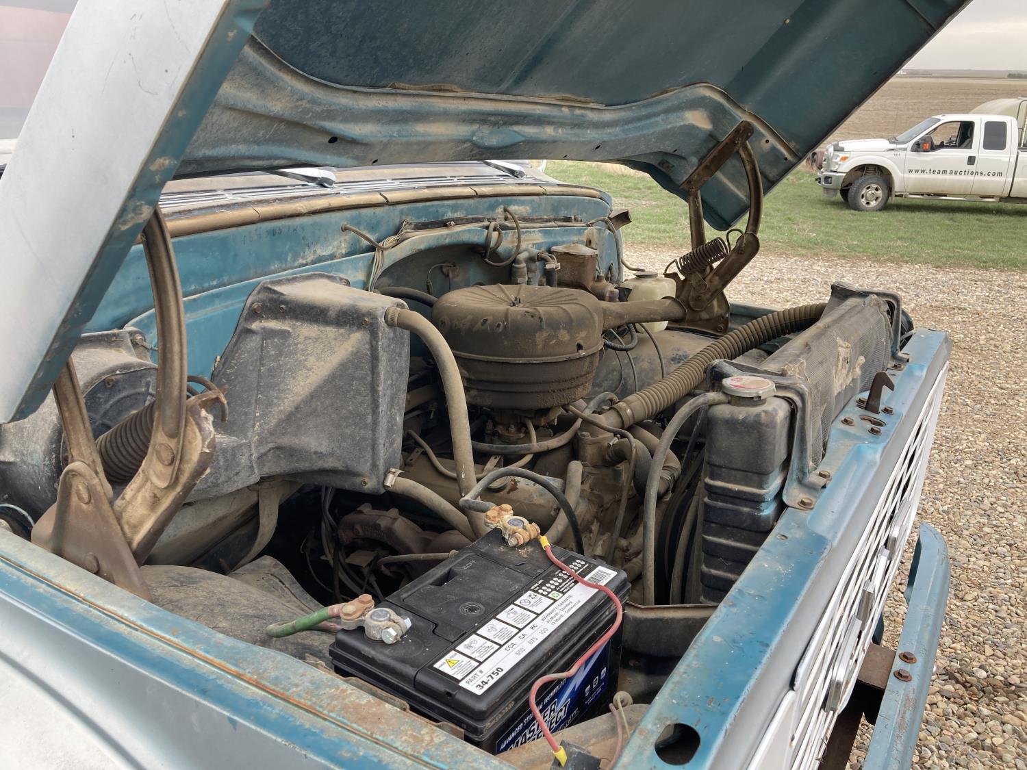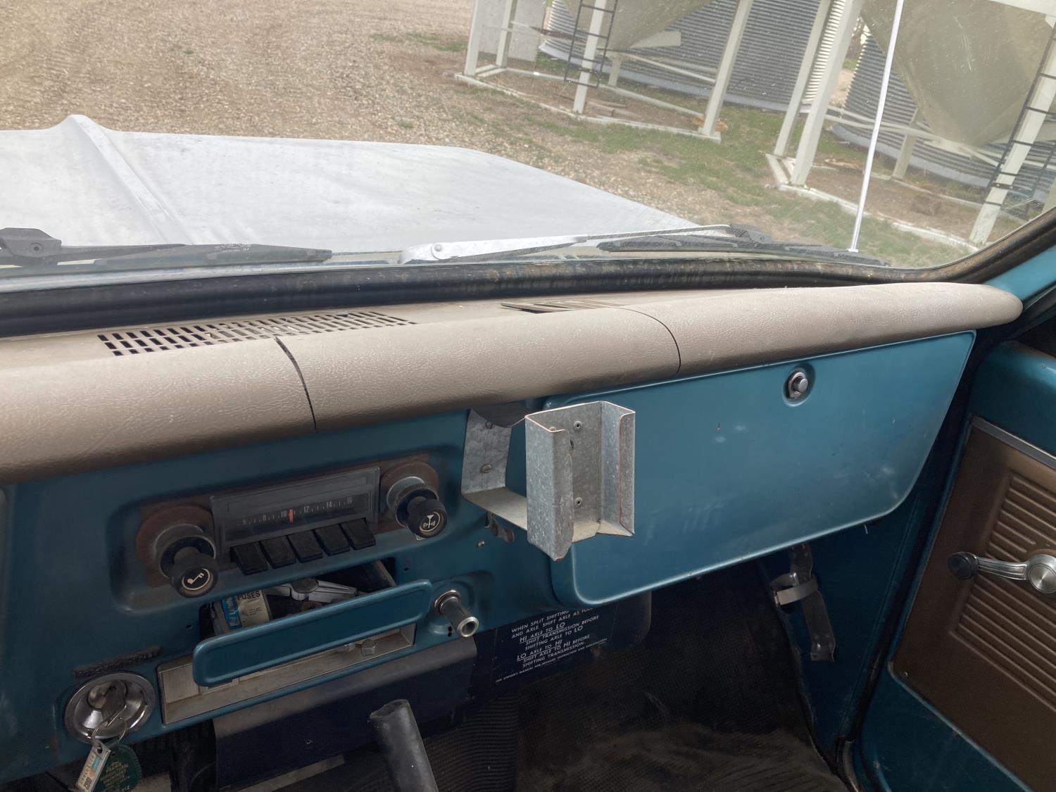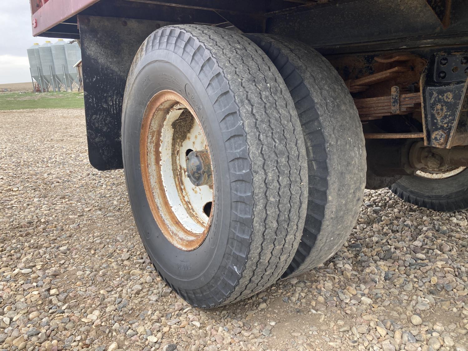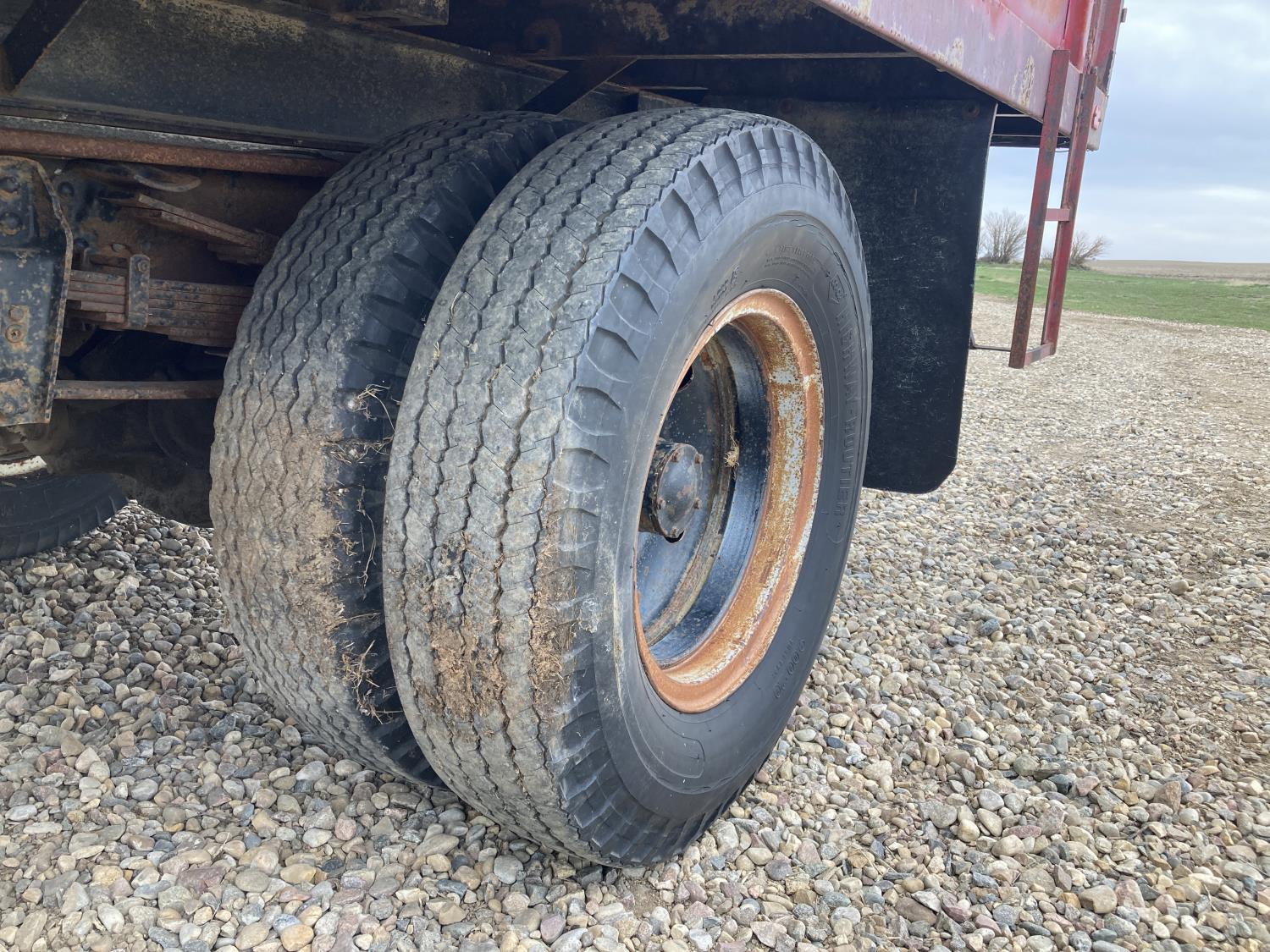 V8 gas engine, 5X2 manual transmission, 14 ft box, hoist, 9.00-20 tires